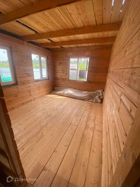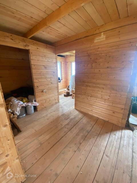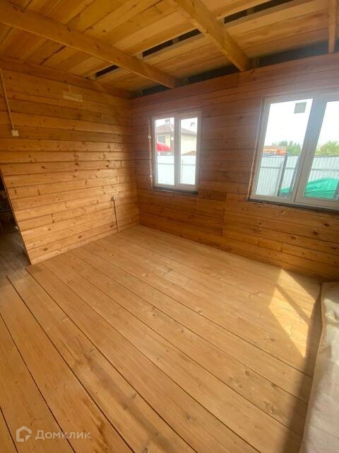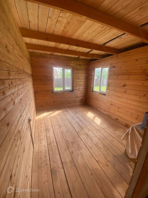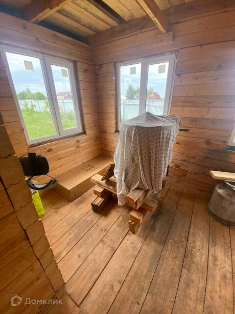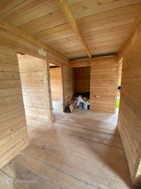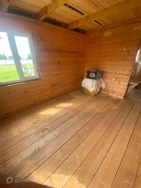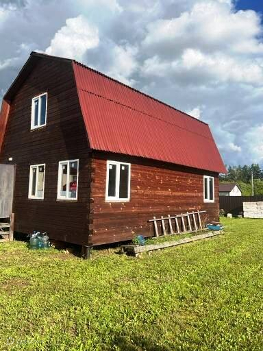 На просторном, ровном участке площадью 15 соток, расположен двухэтажный дом из бруса, площадью 76,8 кв.м., с тремя комнатами на первом этаже, и уютной большой комнатой на втором. В доме есть свет и канализация, газ по границе участка. Централизованная вода заведена на участок.