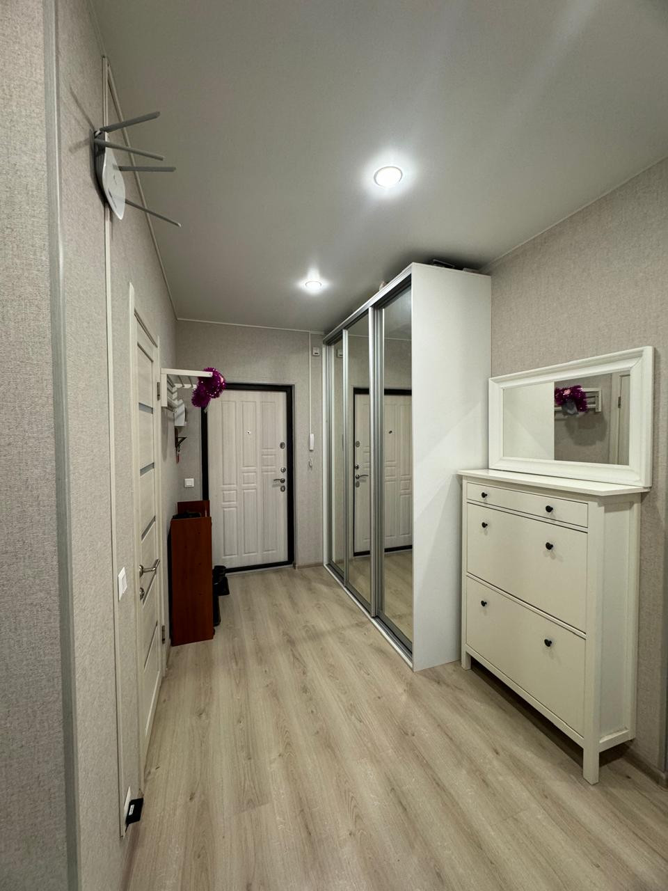 В квартире улучшенная планировка: 3 изолированные спальные комнаты, два больших санузла, вместительный коридор, просторная кухня-гостинная с выходом на собственную террасу, две лоджии.