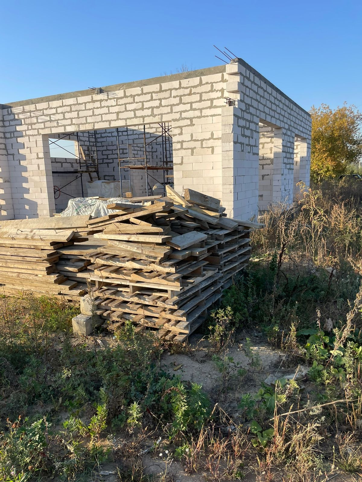 На участке идет строительство дома: 2 спальни , кухня, болерная и санузел, с земельным участком( 20% готовности дома), стройматериалы закуплены, через 3 месяца дом будет полностью готов к проживанию.