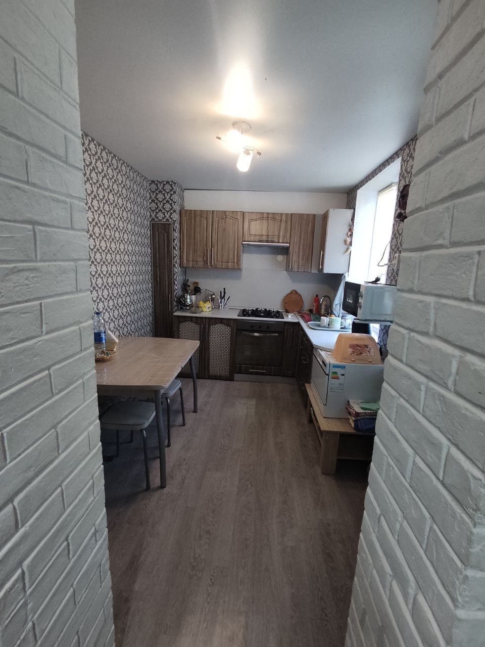 Общая площадь дома 135 м.кв. Имеется всё необходимое для проживания: газ, современное отопление, электричество, водопровод, канализация, интернет, телефон, кондиционер. Стены дома выполнены из блока, облицован кирпичом, крыша шиферная, новые большие и надежные окна ПВХ, полы прочные деревянные, высота потолков 2,8 м.