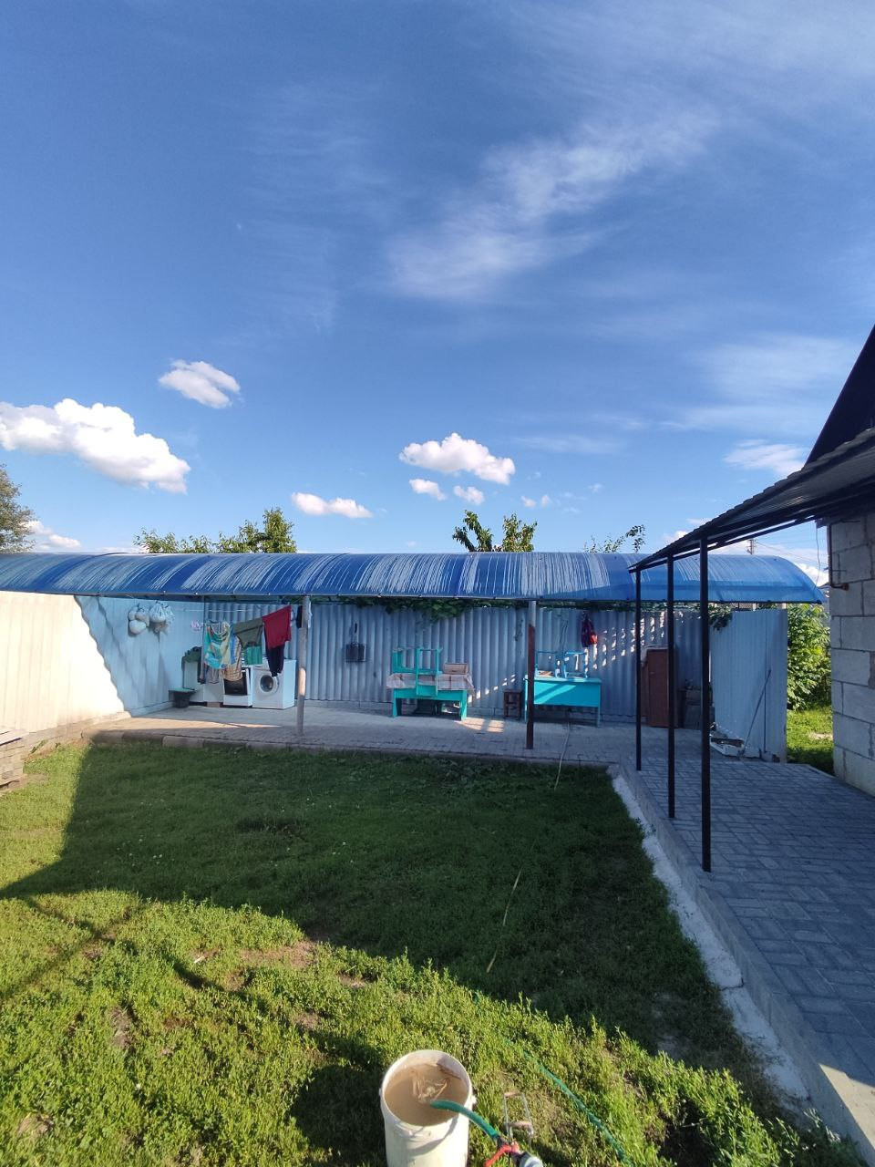 Дом расположен на ровном участке 32 сот. Большой двор и огород, в ухоженном состоянии. На участке расположен плодовый сад, теплицы, виноград и многое другое. Во дворе находятся летняя кухня с водопроводом, газом, теплым полом. большой гараж с ямой, подвал, сараи. Установлены ворота, палисадник, усадьба огорожена забором.