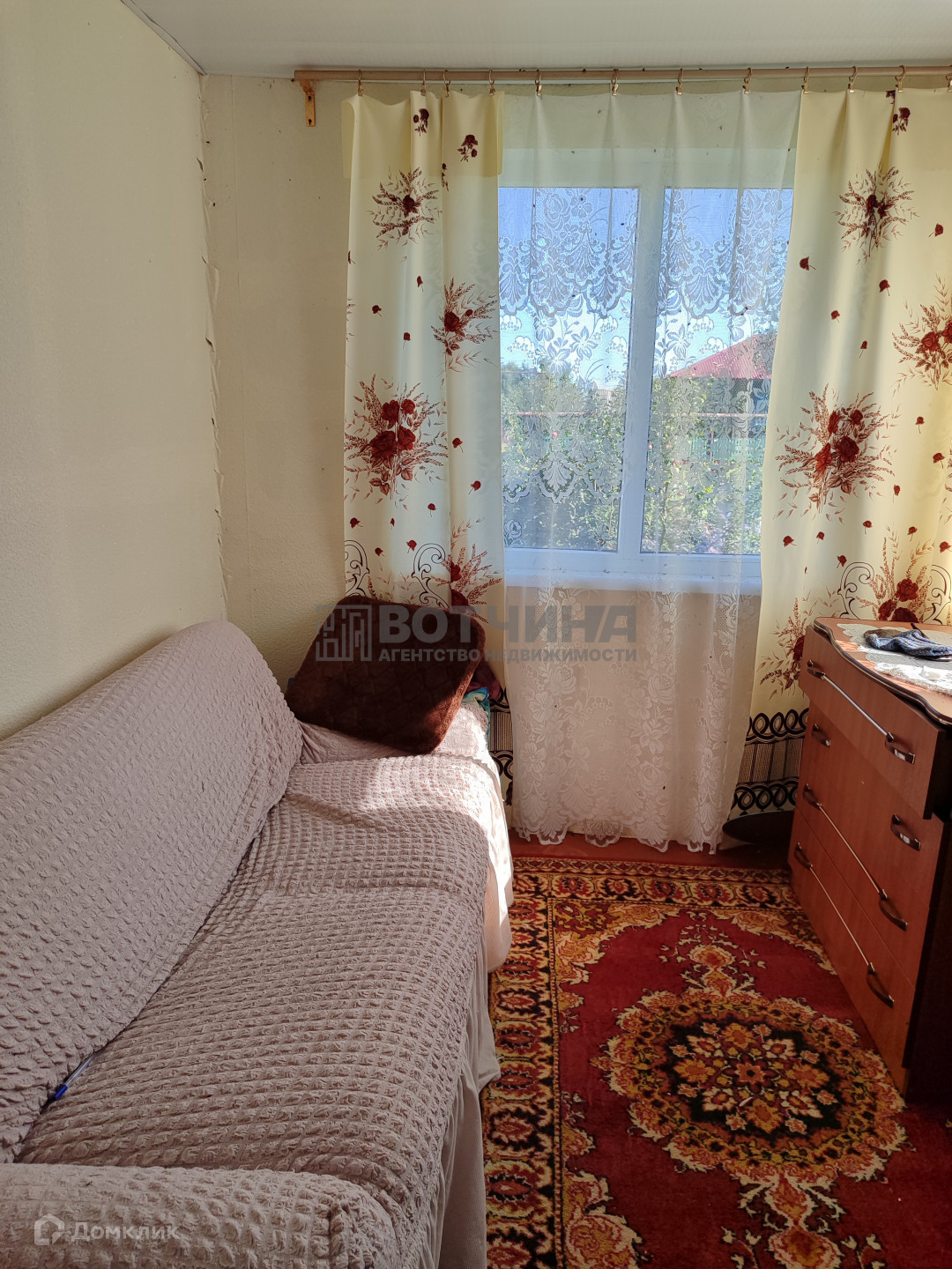 На участке: сарай, баня, беседка, плодовые деревья и кустарники (яблони, вишня, смородина, малина, клубника, много цветов).