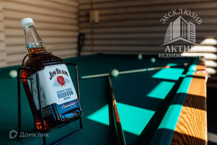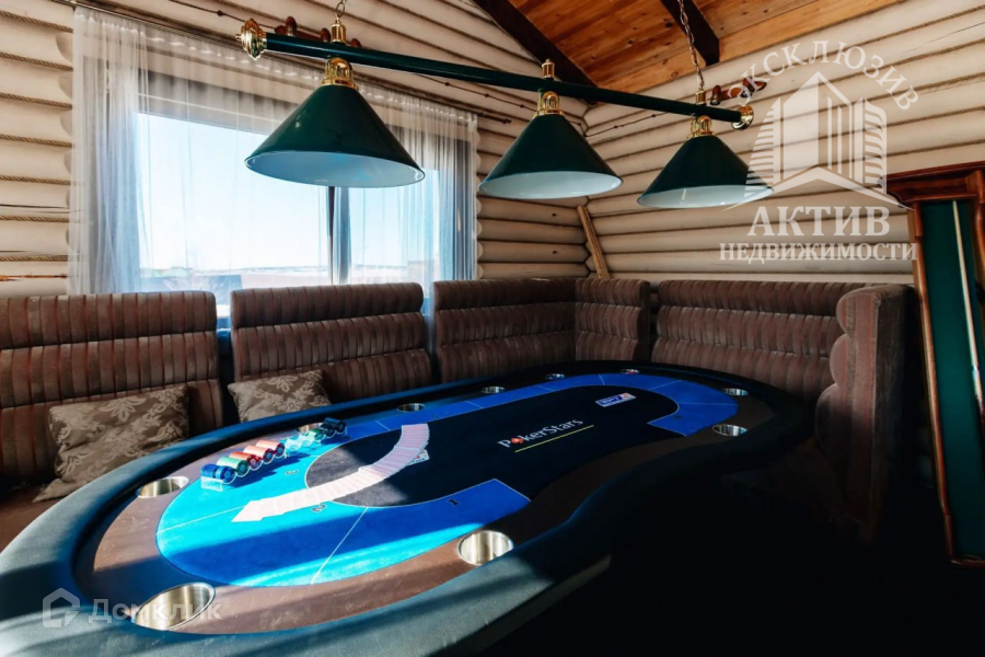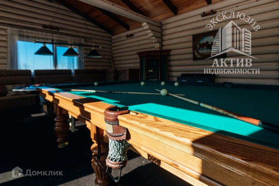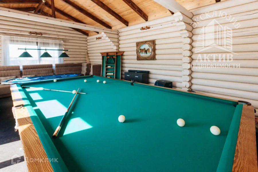 В беседке профессиональный бильярдный стол и стол для настольных игр.