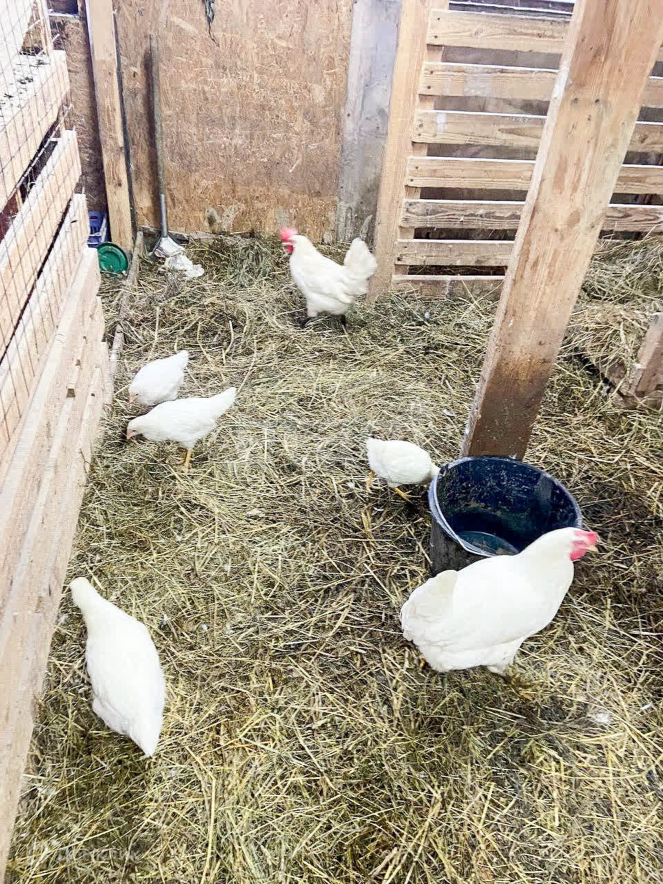 -Хранение сена: чердак курятника + навес площадью 6х6 кв.м.