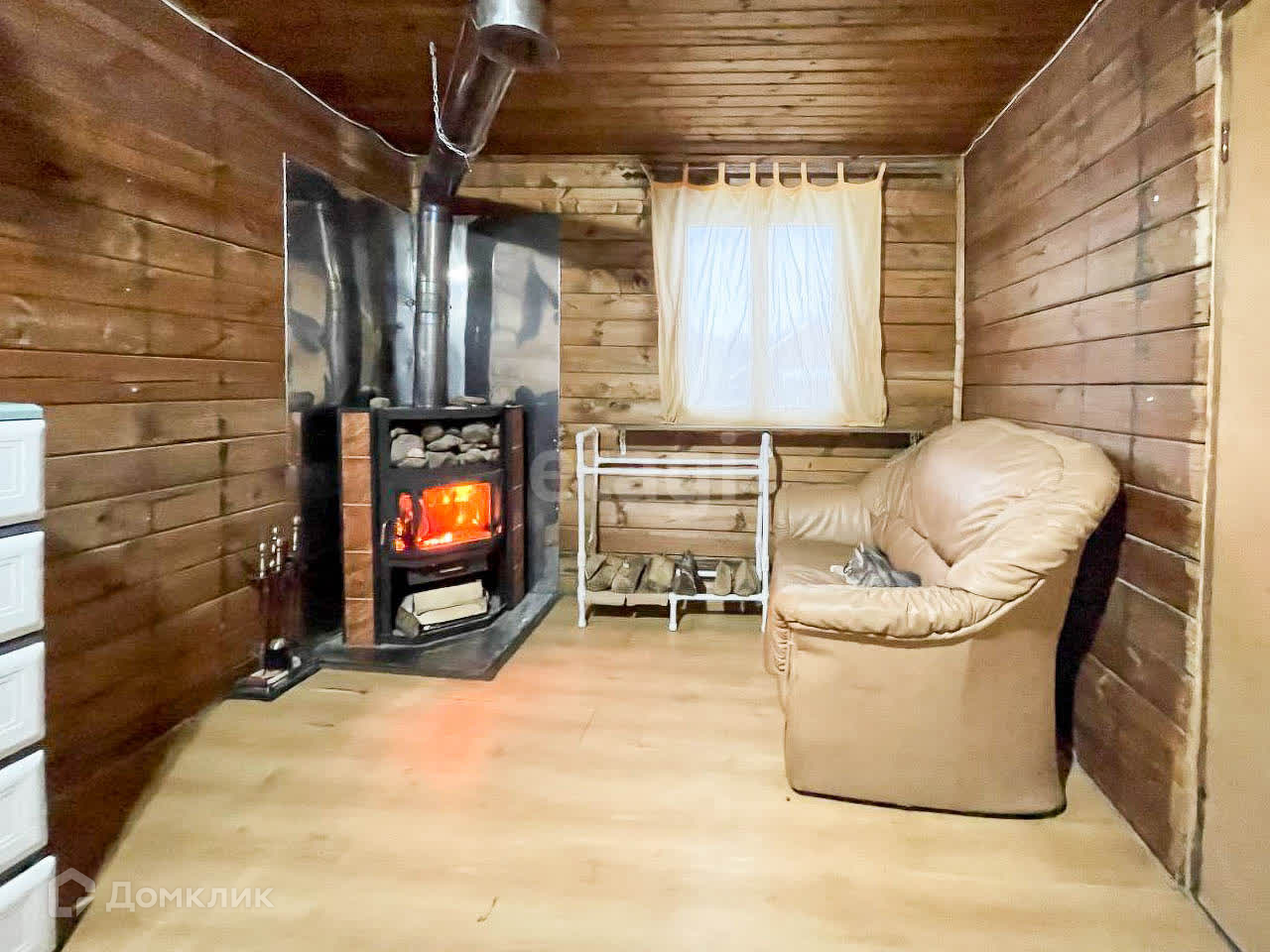В основном доме 4 комнаты: 3 спальни и каминная с печь-камином + откидная двухспальная кровать.