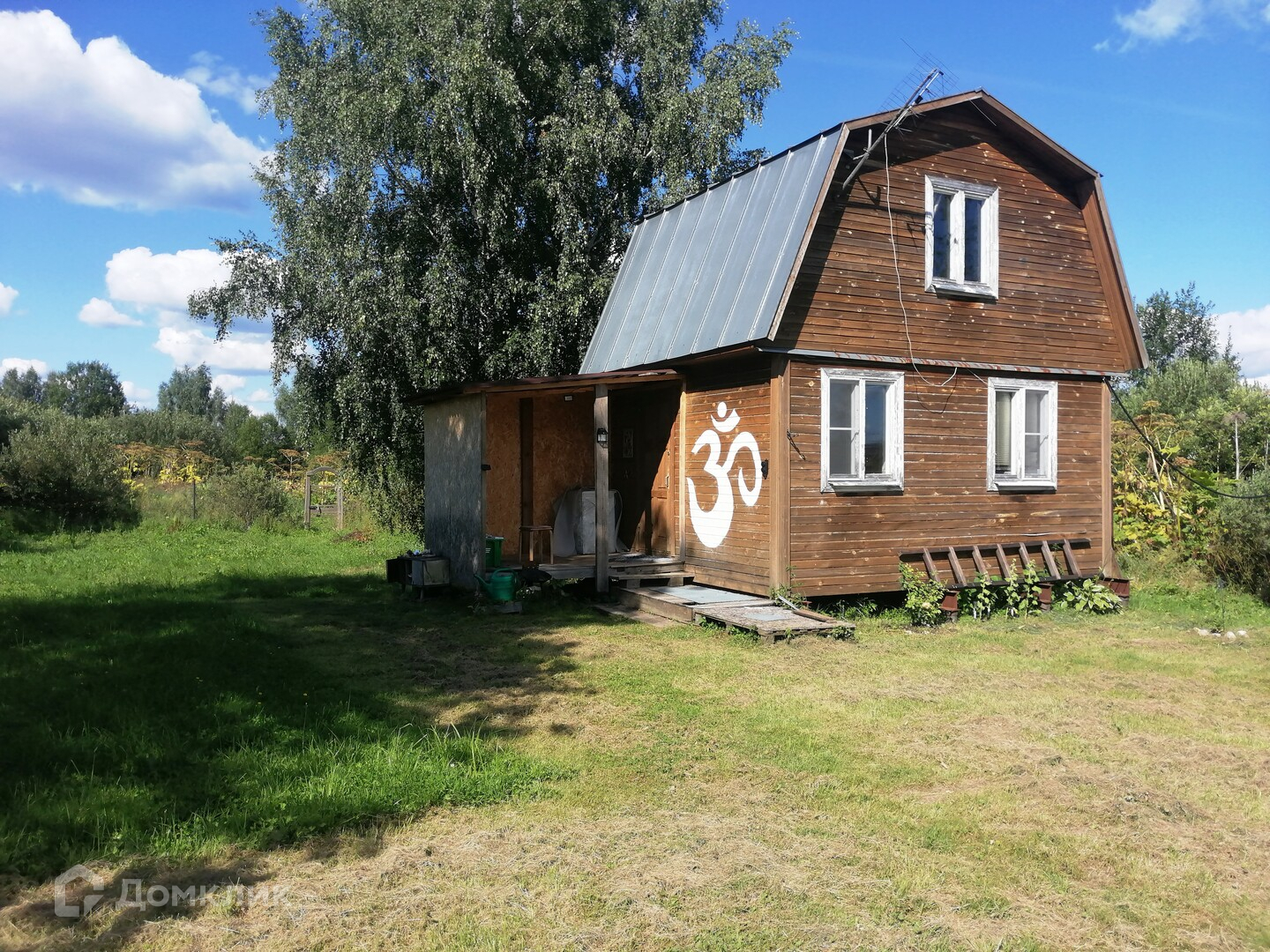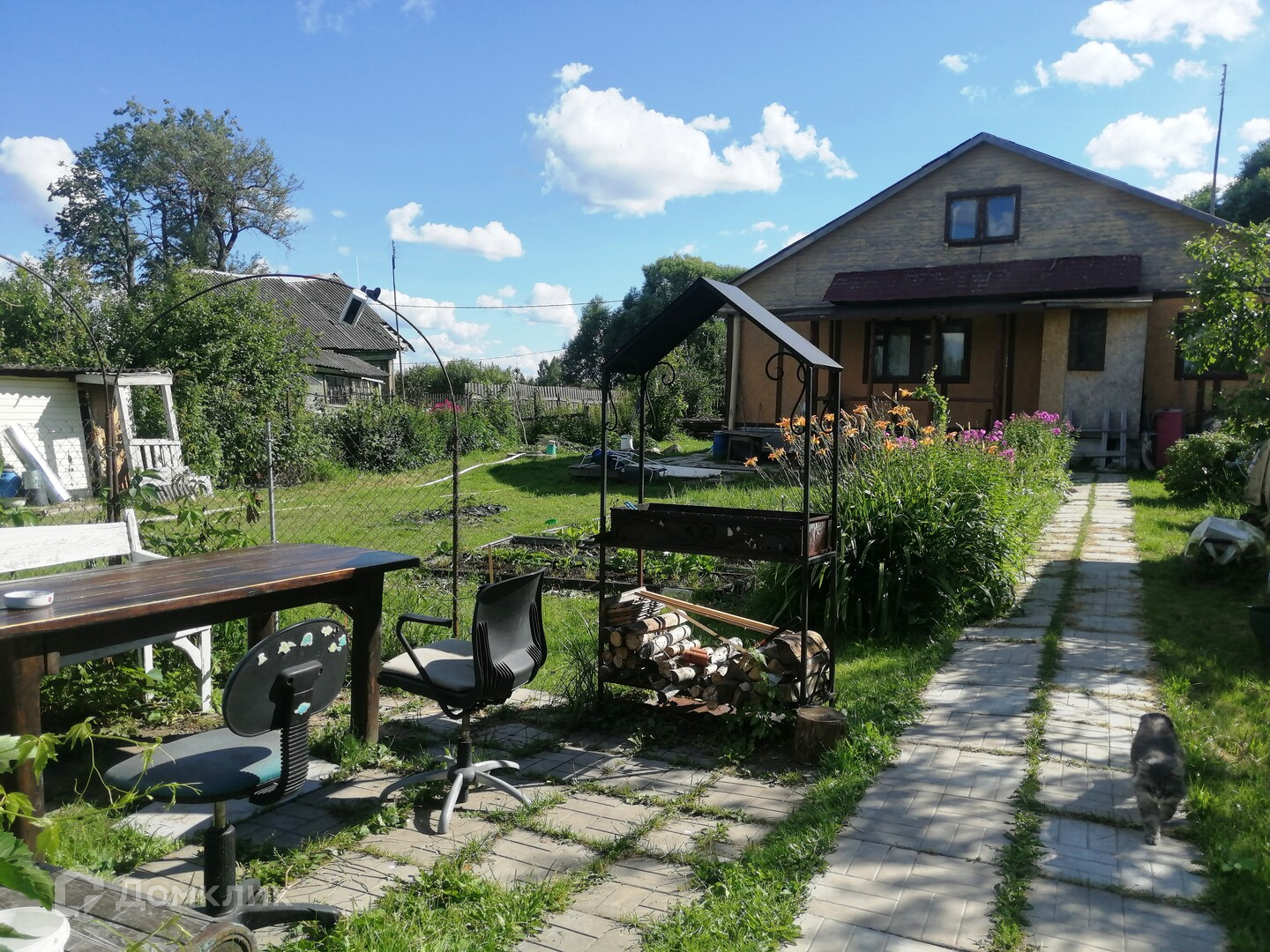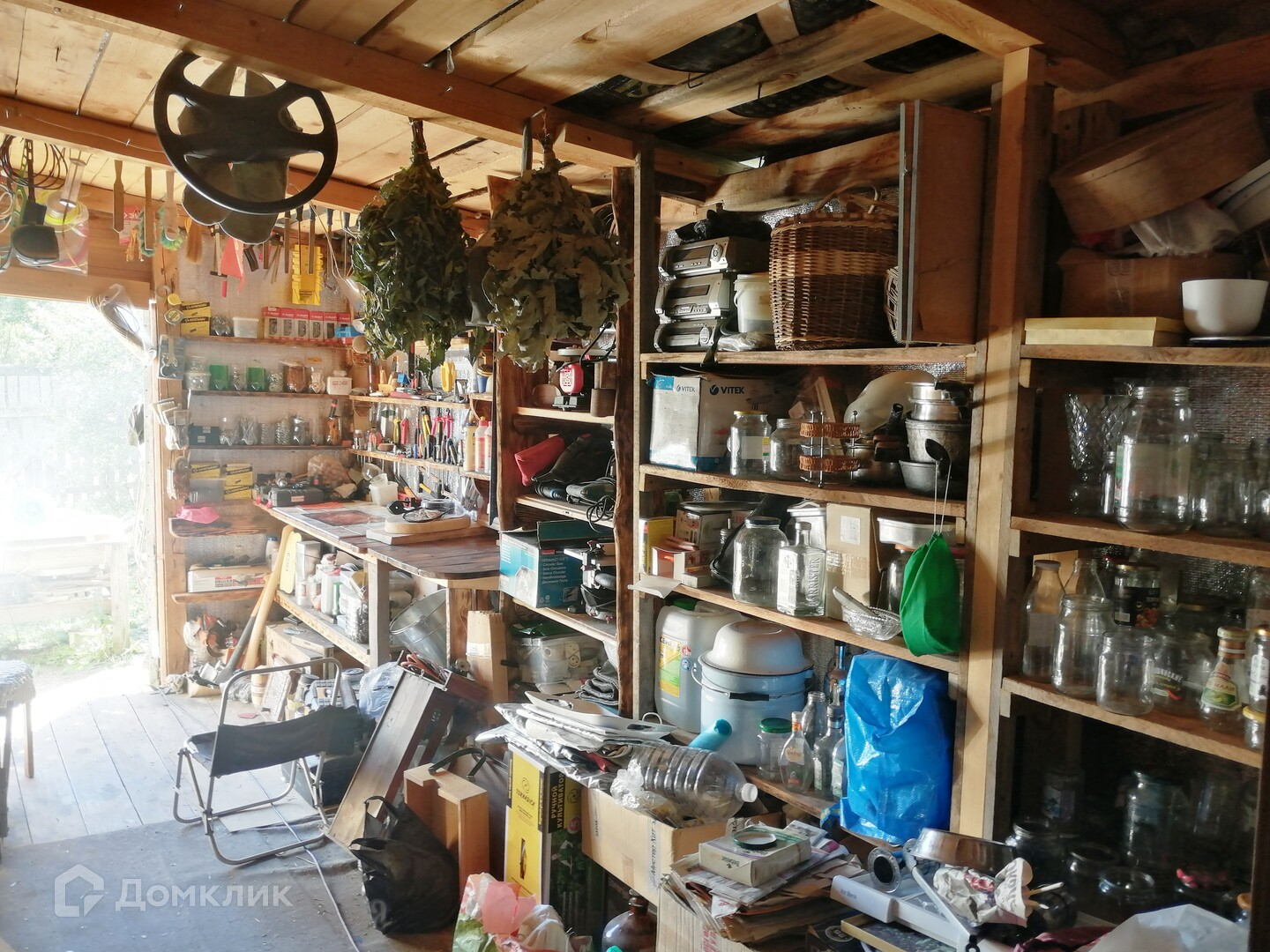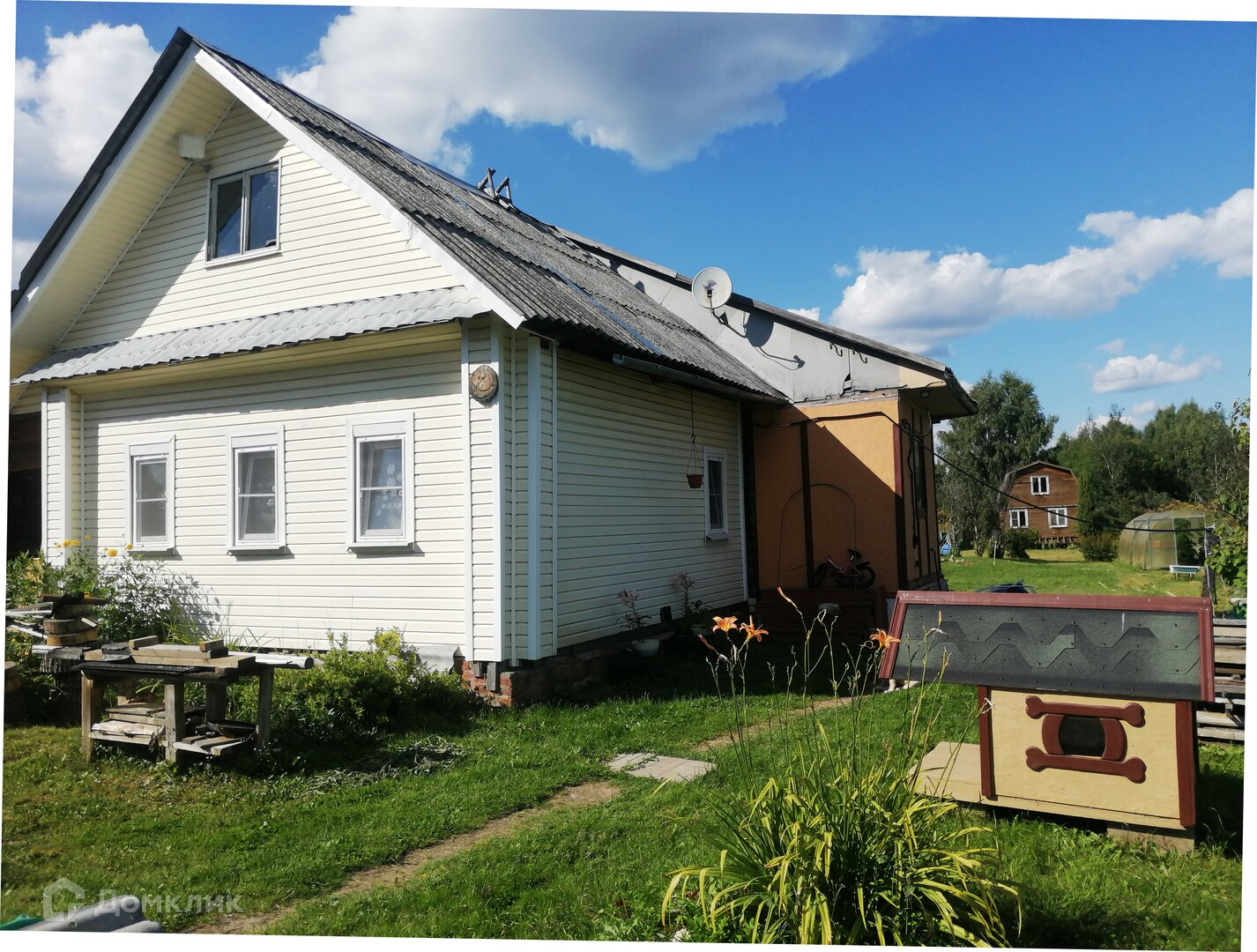 На участке есть еще один летний гостевой дом. Два этажа, обшит внутри вагонкой.