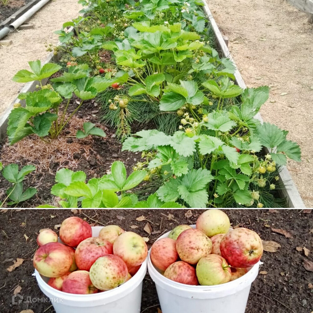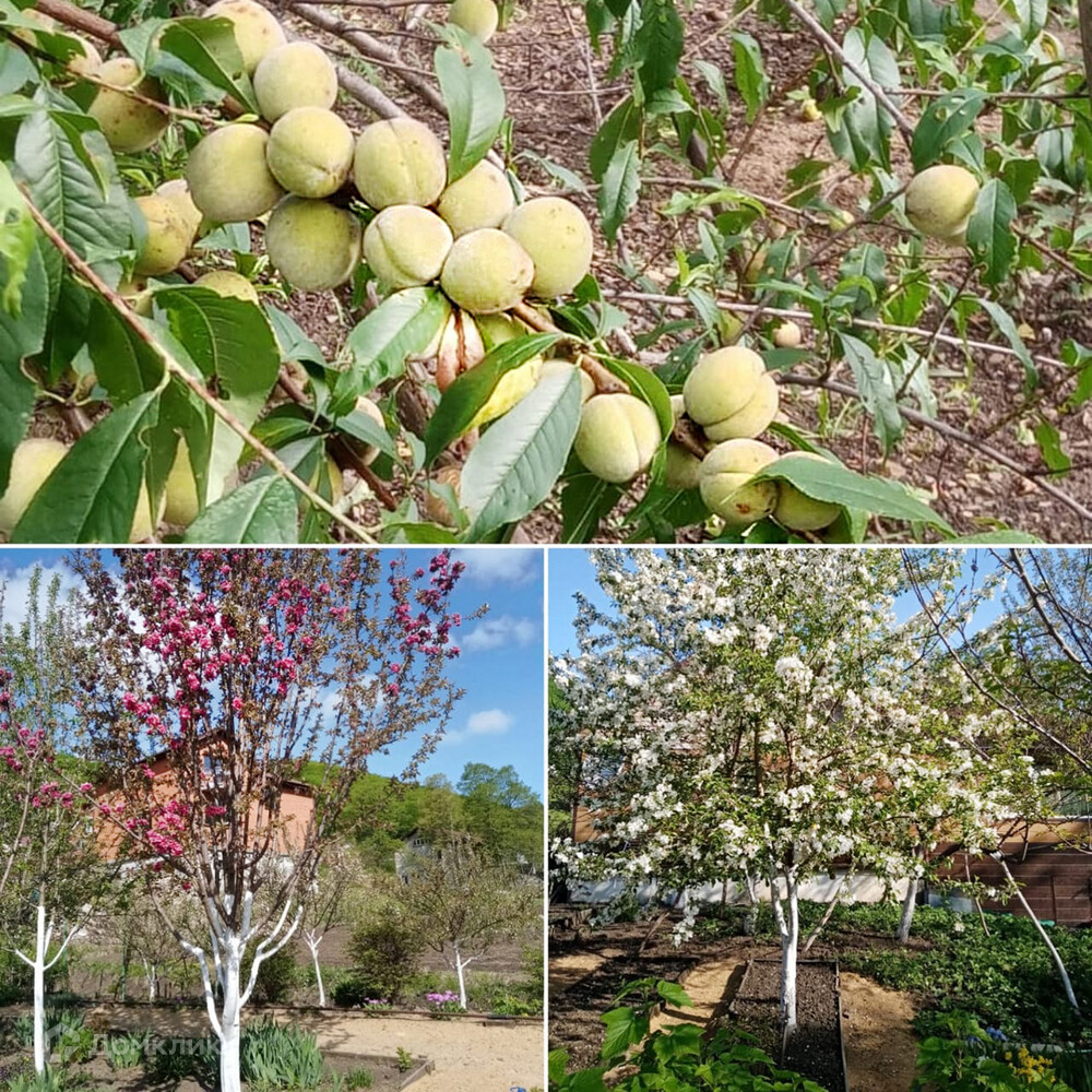 На участке имеется плодоносящие деревья и кустарники: Яблоня, груша, персик, абрикос, вишня, малина, жимолость, смородина, крыжовник и другие культурные растения. Виноградник, кишмиш, клубника.