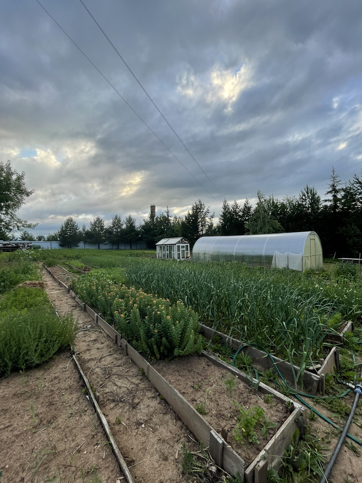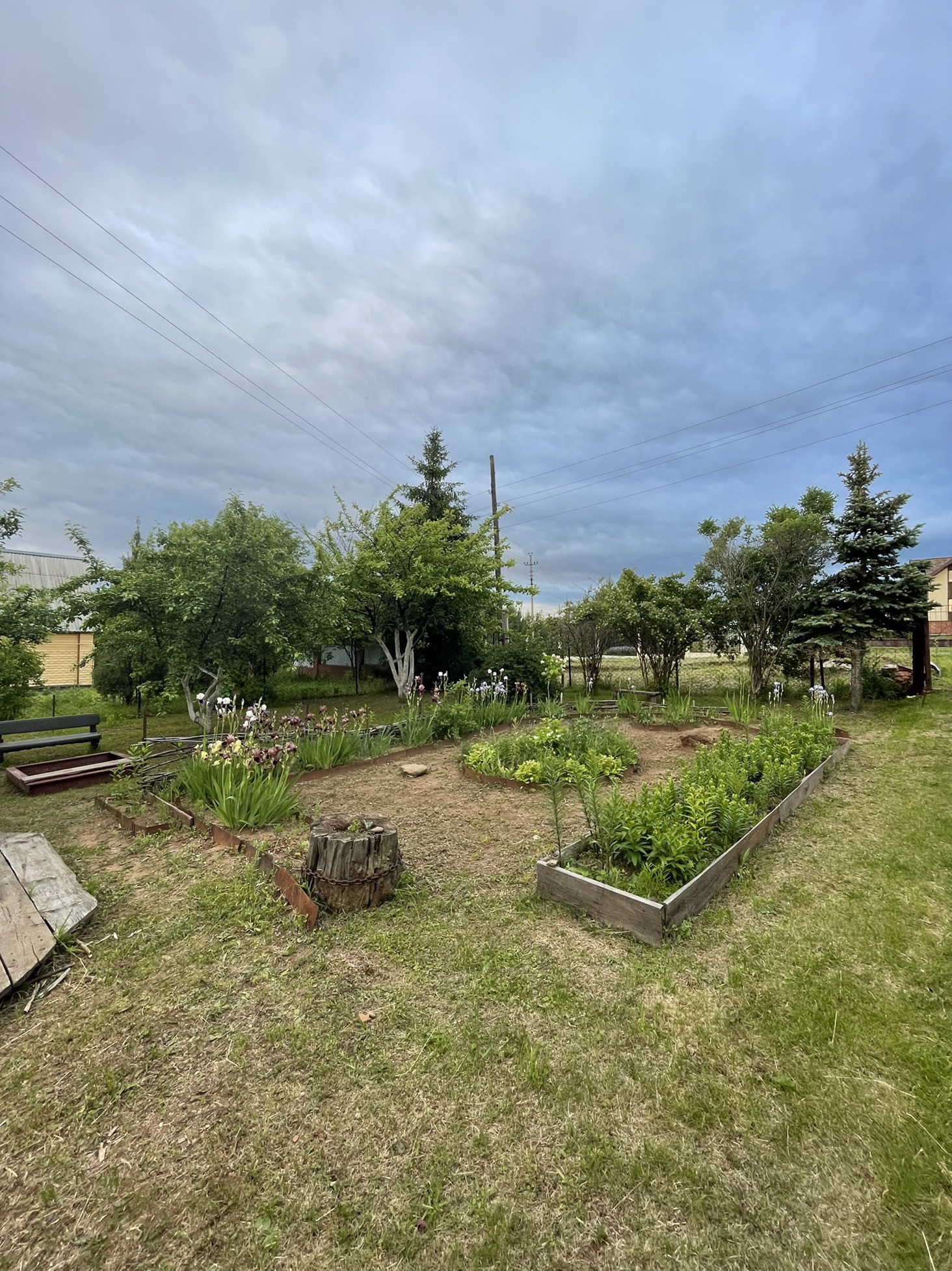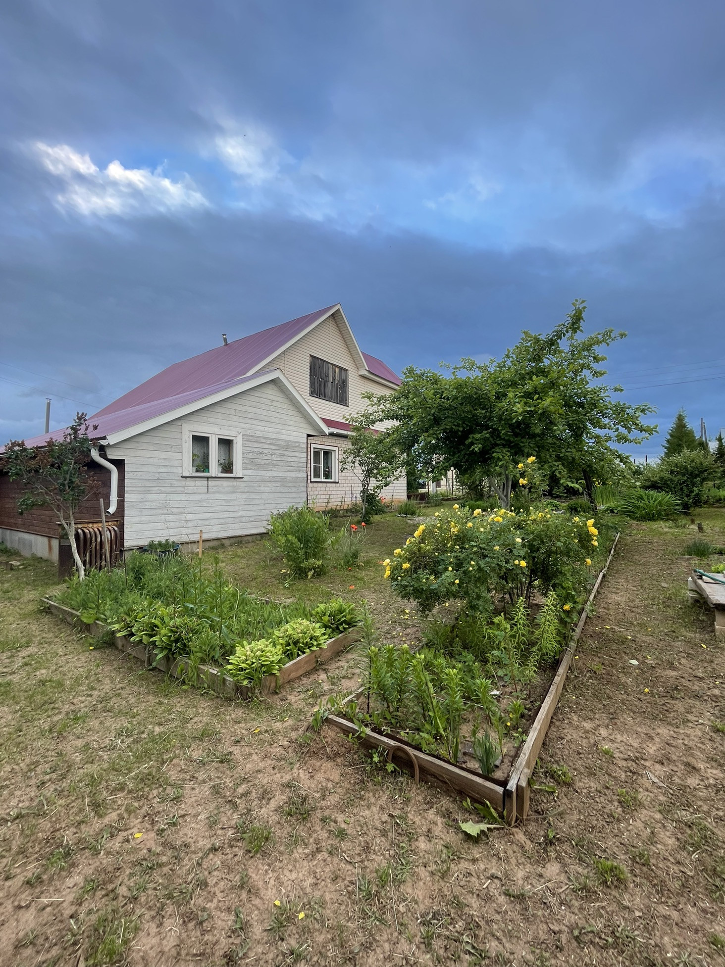 8 яблонь, 5 вишен, 3 куста сортовой смородины, Слива желтая, 3 темных очень вкусных крупных сливы, 3 грецких ореха.