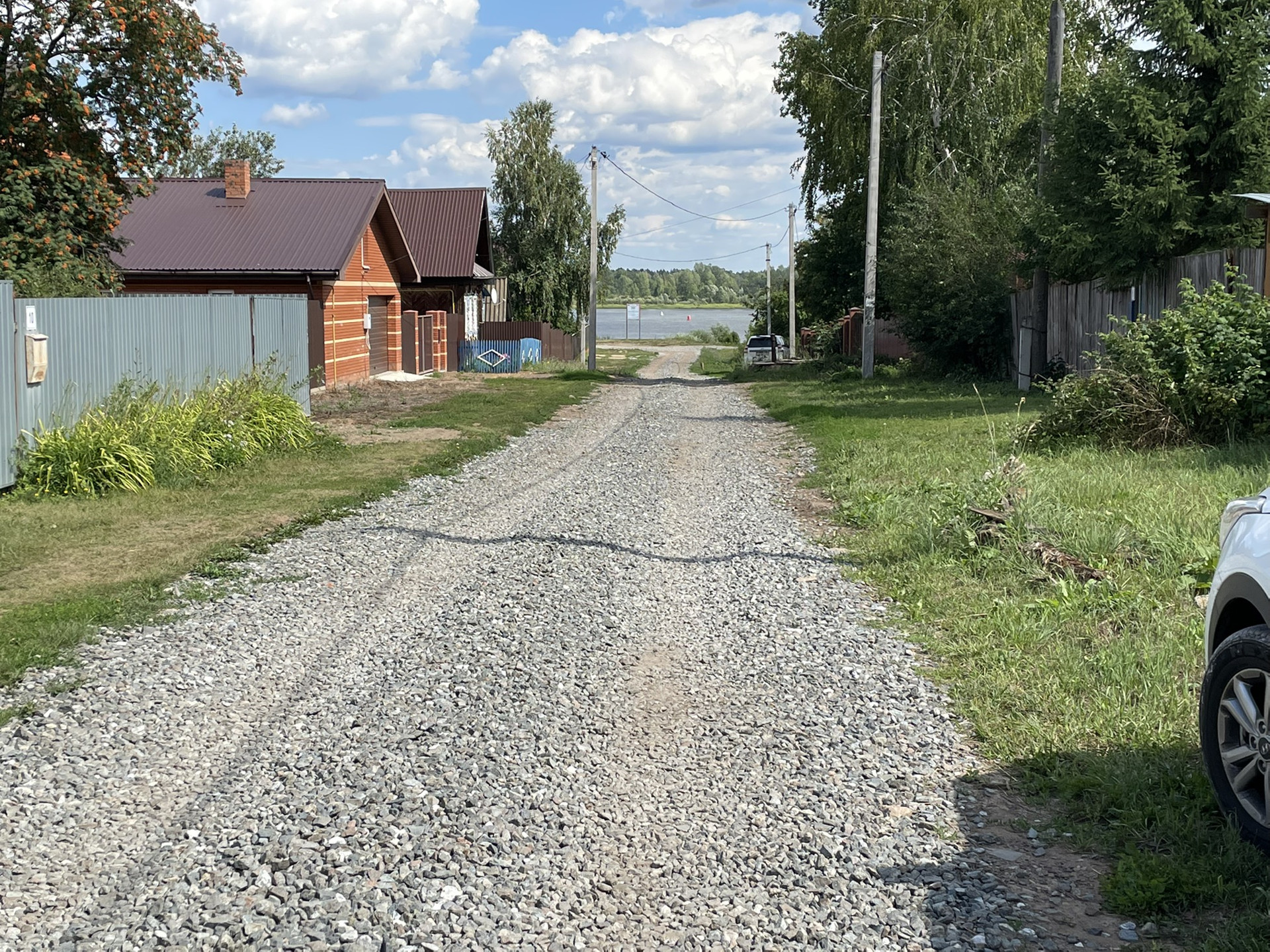 Новая асфальтированная дорога до улицы, по улице - хорошая гравийная.