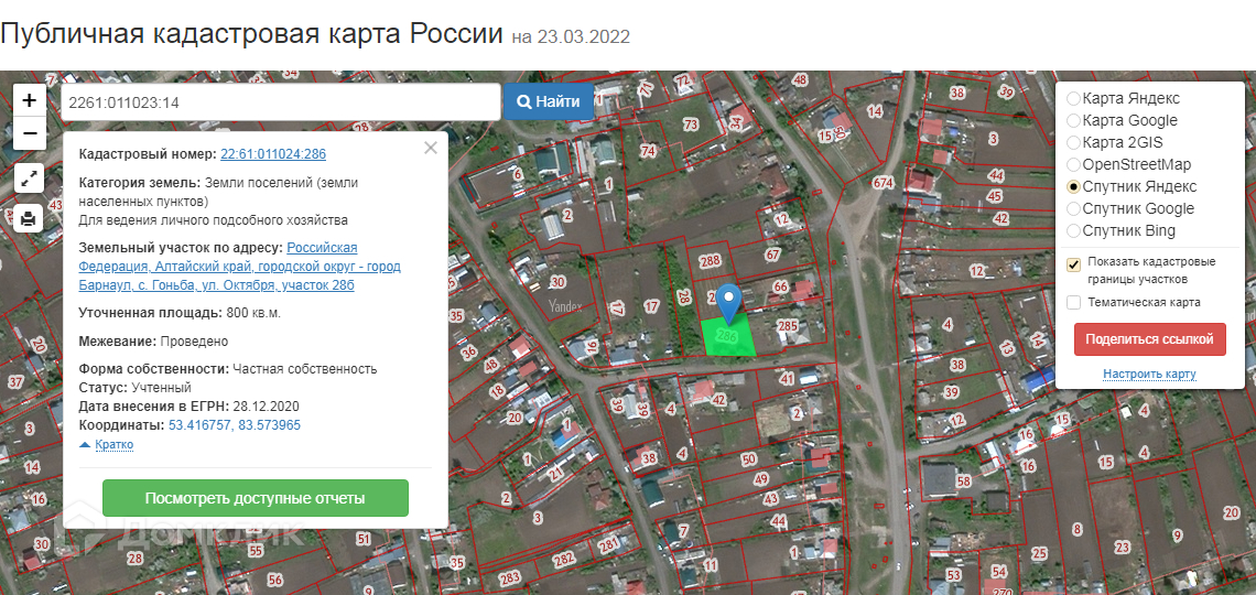 Кадастровый номер 22:61:011024:286
