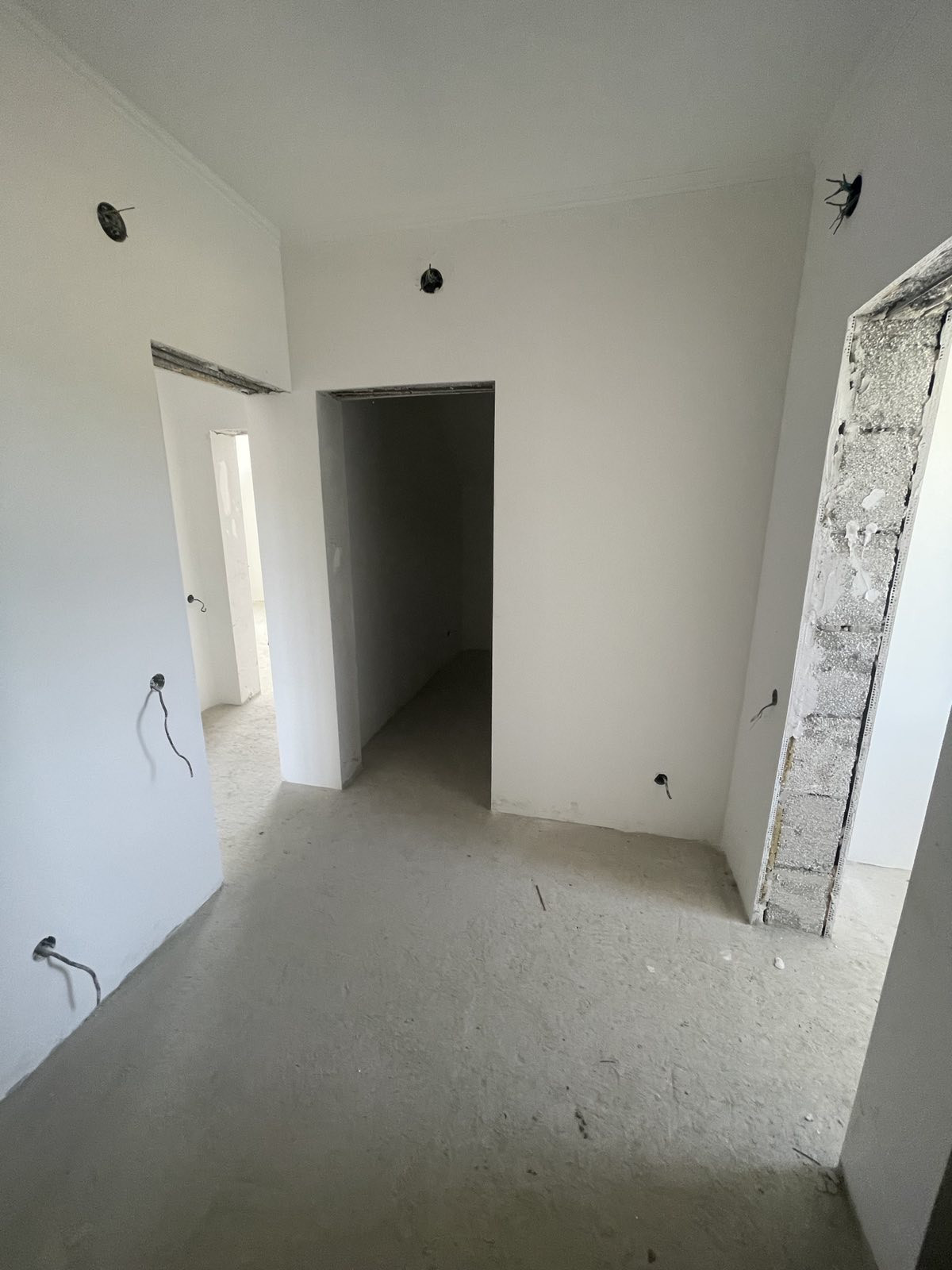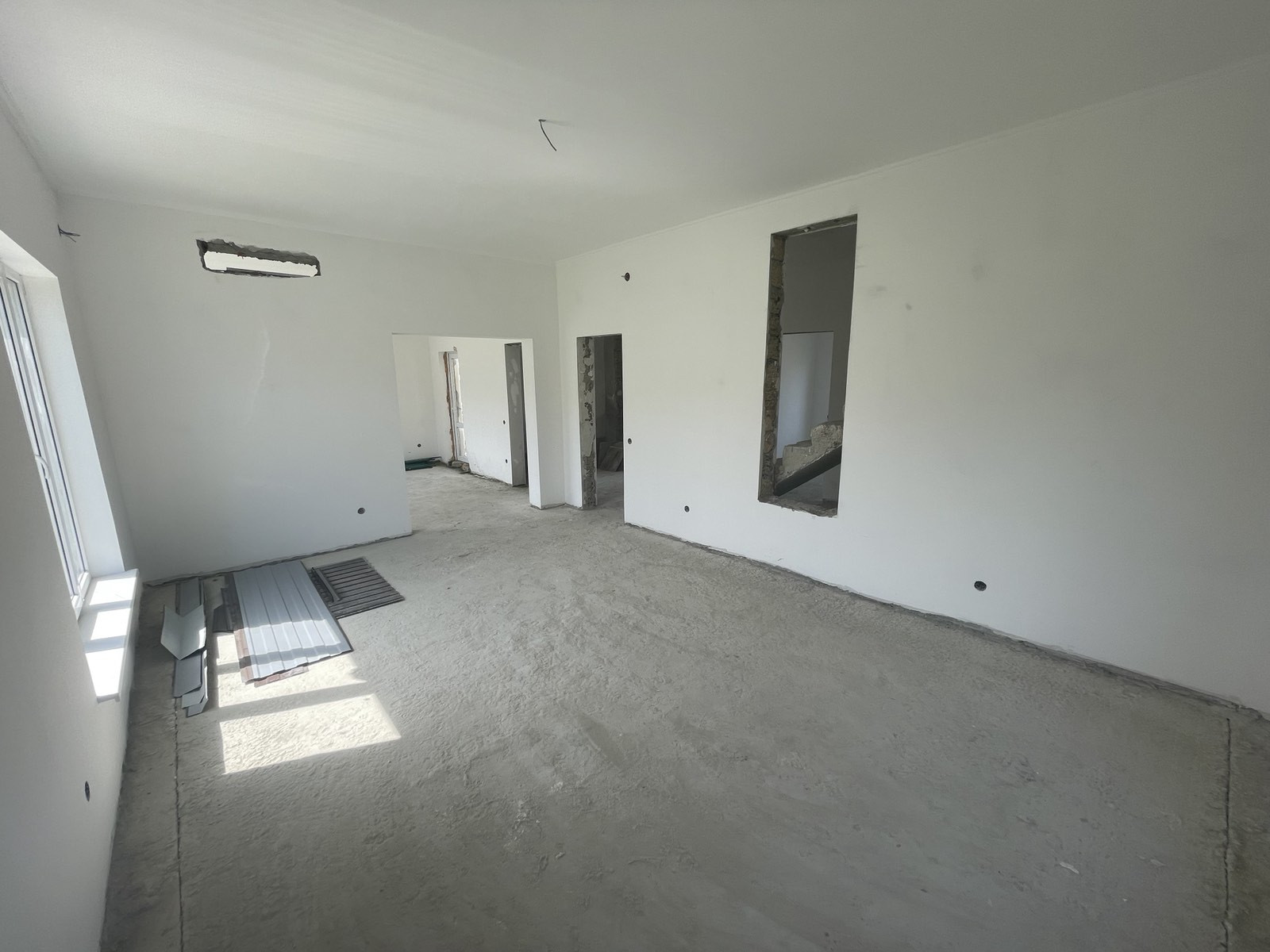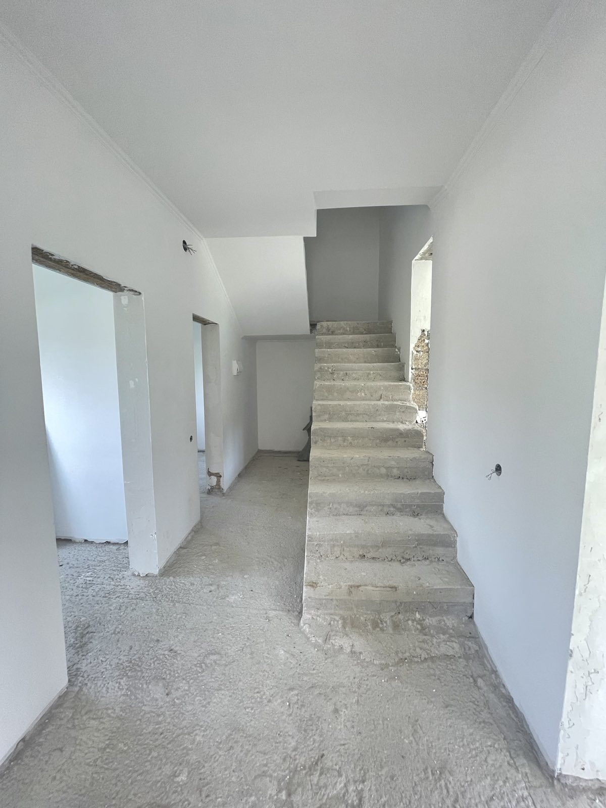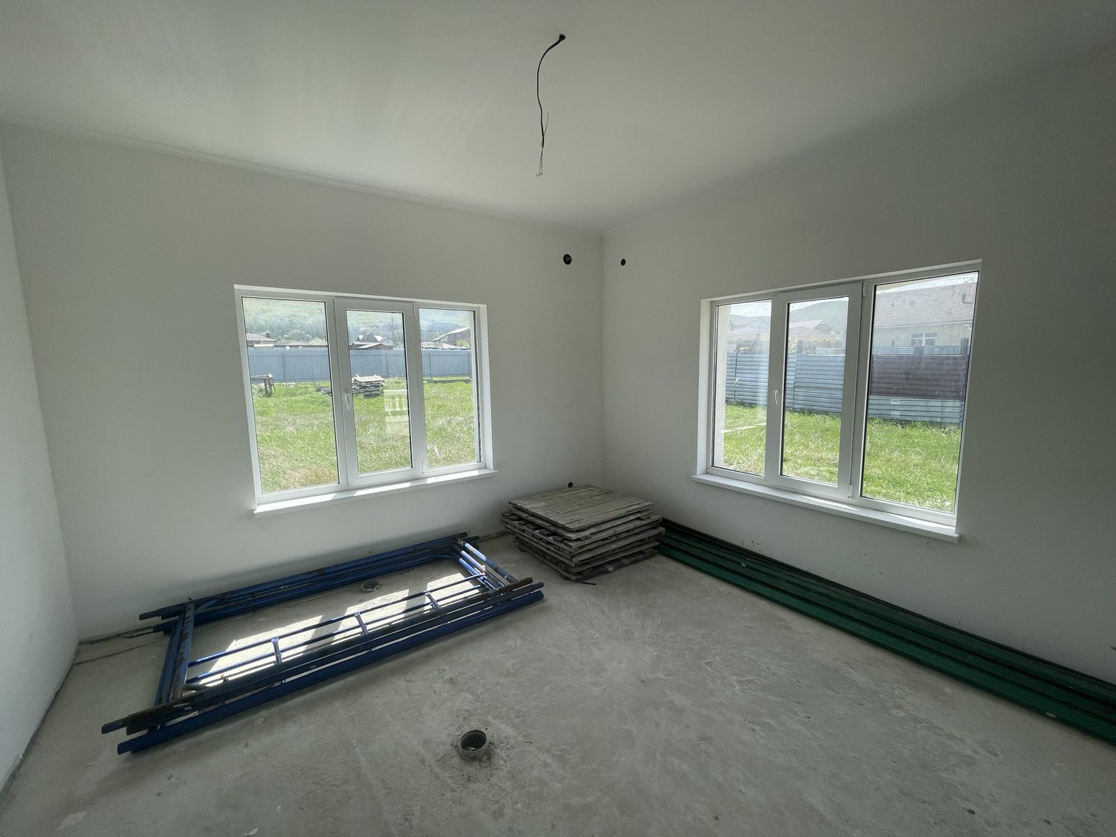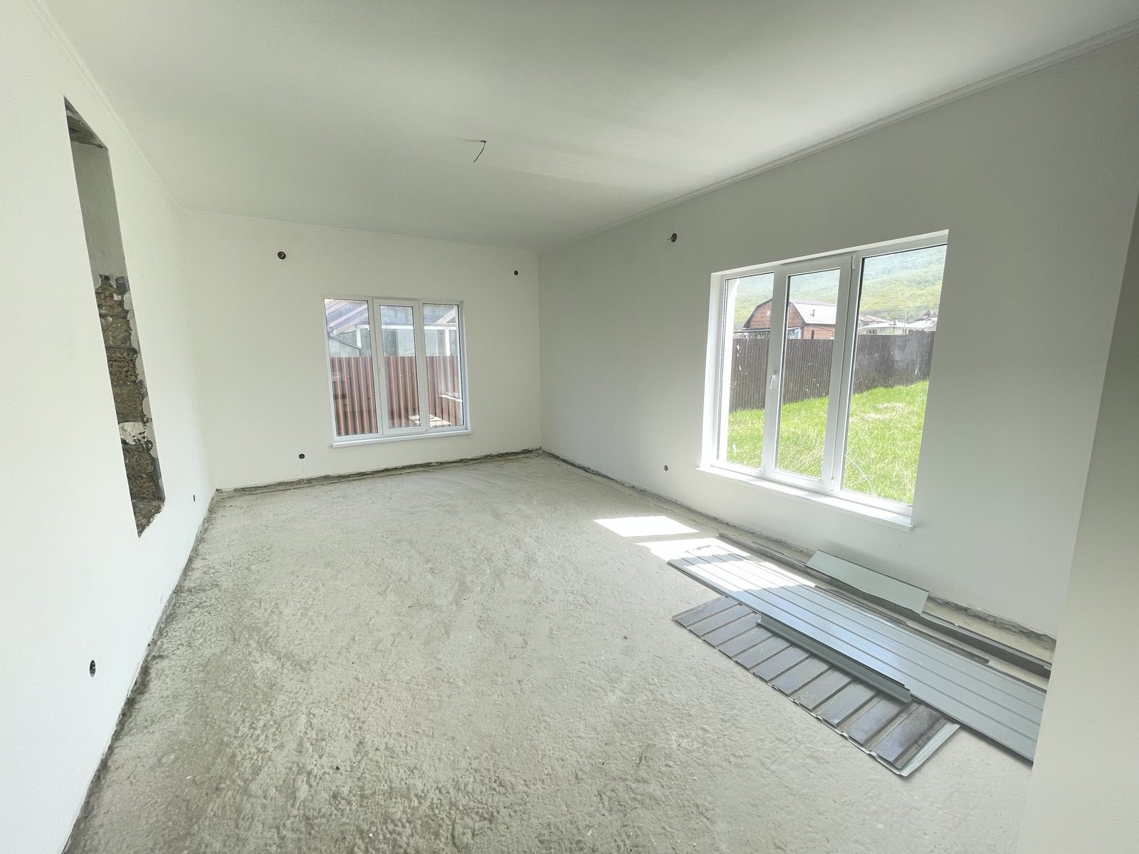 В доме выполнена чистовая отделка стен и потолков, установлены металлопластиковые окна, на втором этаже залита стяжка полов. Высота потолков на всех этажах 3,3 м. На первом этаже жб плита без стяжки, что дает возможность владельцу реализовать техническое решение отопления полов по своему усмотрению. В дом заведено электричество мощностью 15 кВт, вода - до момента реализации проекта водоснабжения села, можно вырыть колодец, глубина 12-18 м, вода питьевая, большой дебит. Канализация – современный септик. В селе запущены проекты водоснабжения и газификации села, ожидаем реализацию проектов в 2024 году. Выполнена разводка электричества и канализации.