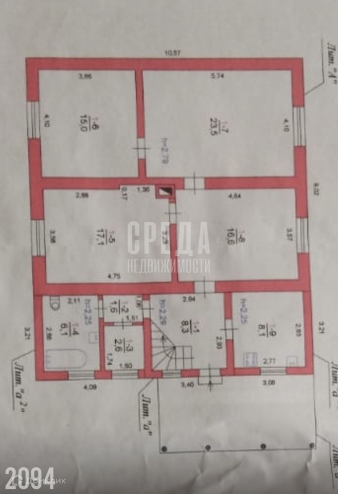 Второй этаж в черновой отделке, на три комнаты.