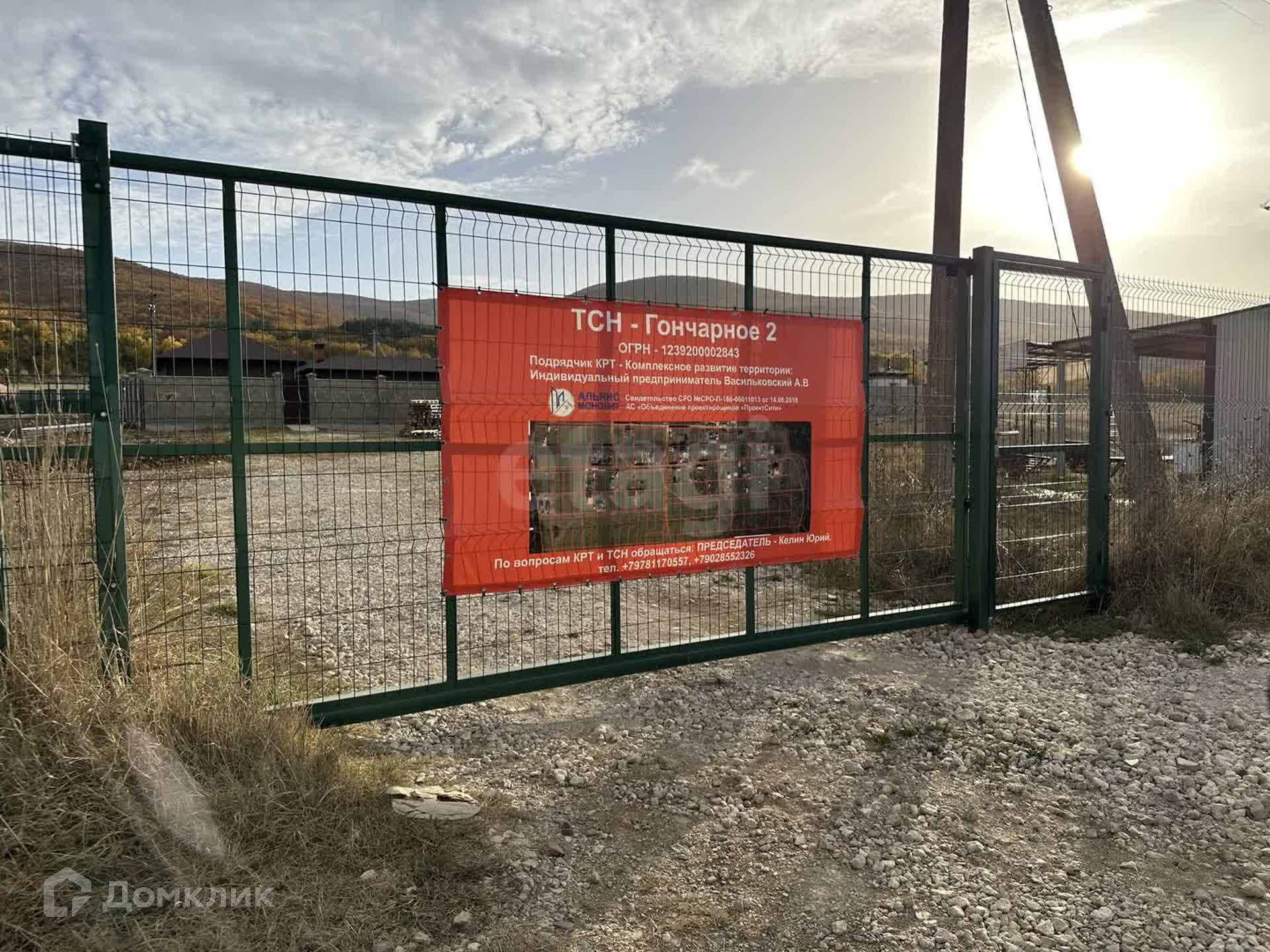 В продаже земельный участок в с. Гончарное, 7,7 сот. с видом на горы. Участок ровный, правильной прямоугольной формы, с двух сторон огорожен забором.