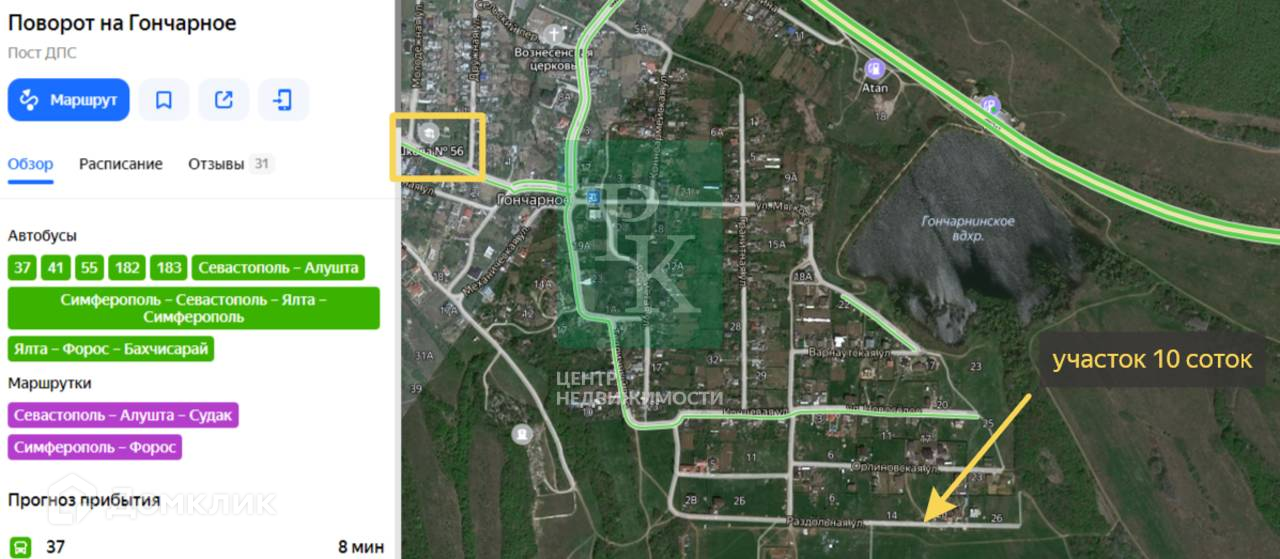 Участок находится в развивающемся селе Гончарное, где в 10 минутах пешим шагом есть остановка общественного транспорта (маршруты №183,37,41,55). В районе также расположены все социально значимые объекты для комфортной жизни: магазины, детский сад, школа и т.д.