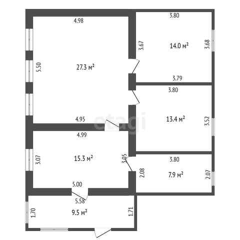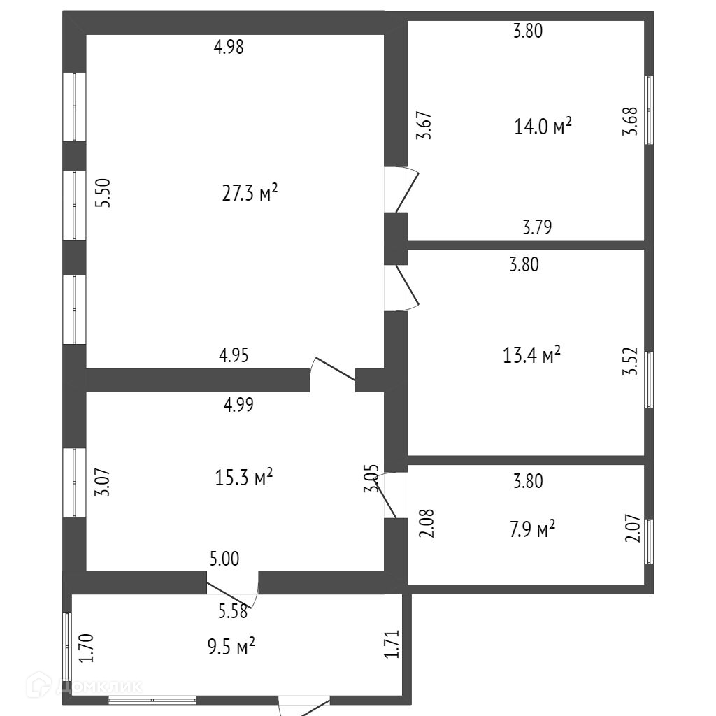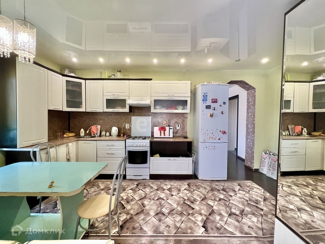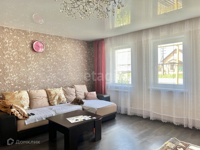 Дом состоит из: пристроенной веранды(9.5 кв.м.), просторной кухни( 15кв.м.), совмещённого санузла (8кв.м.), большой гостиной (27 кв.м.) и двух изолированных комнат (13,5 и 14кв.м.). Есть сухой погреб. Хороший , современный ремонт. Натяжные потолки во всех комнатах. На полу сделали стяжку и постелили ламинат. Окна во всех комнатах пластиковые. Батареи биметалл. Отопление газовое, своя скважина.