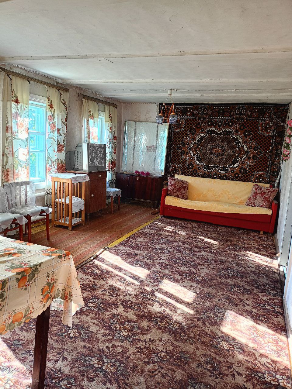 Дом требует ремонта, водопровода нет., большой двор,огород.Можно использовать под дачу,река и базы отдыха недалеко.Документы готовы.Торг.