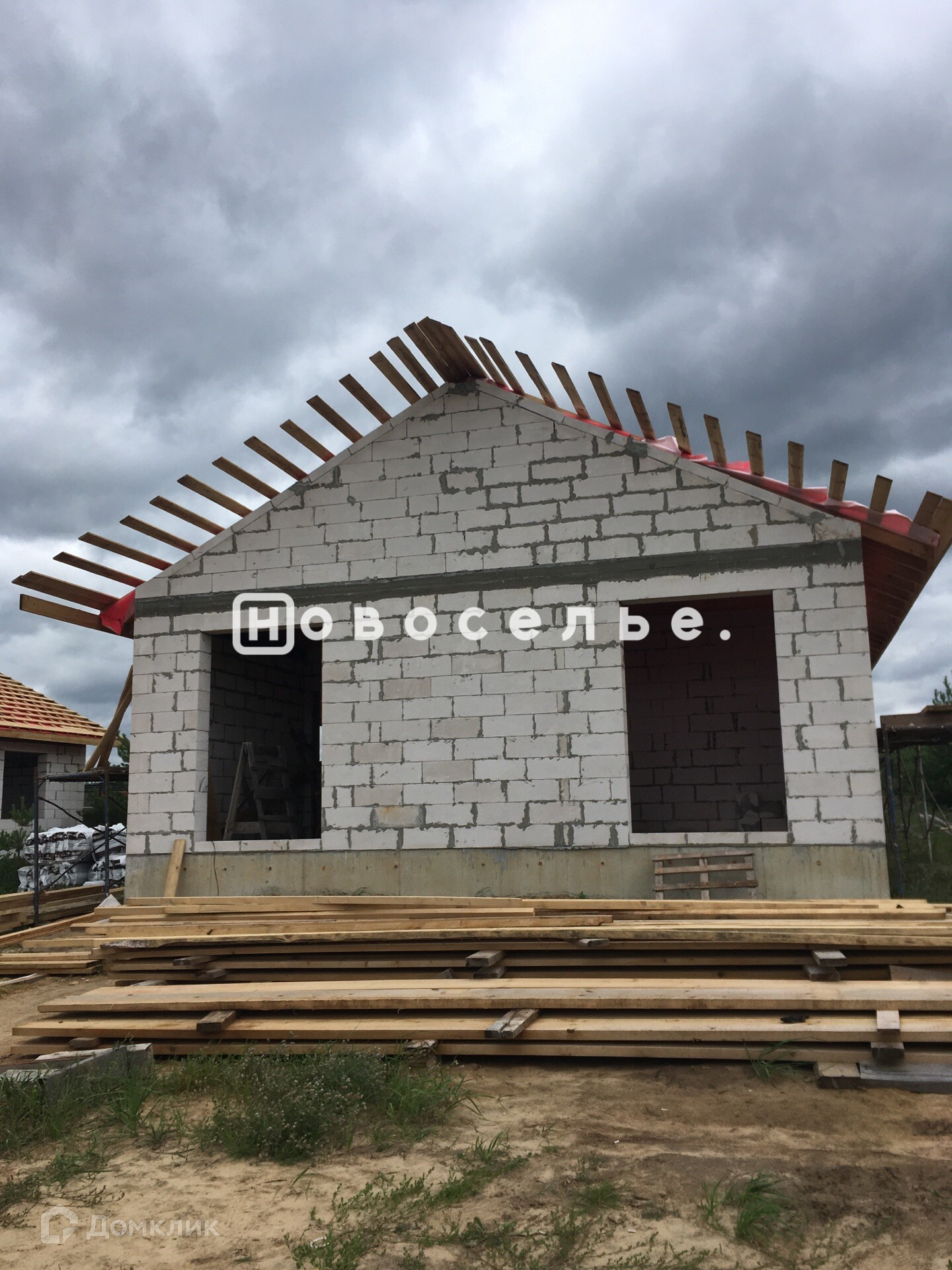Комплектация дома от застройщика: высота потолка: 2.75 м, в кухне=гостинной до 5 м, фундамент и цоколь – монолитный железобетонный ростверк высотой 800 мм шириной 350 мм на буронабивных сваях d=250 мм, арматурный каркас в 6 жил d=12 мм, связи d=8 мм; • отмостка дома - бетонная с армированием сеткой, ширина 800 мм, толщина до 130 мм бетон В15, утепление пенополистиролом 50 мм на 600мм;