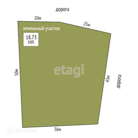 Площадь участка 18.73 сот.