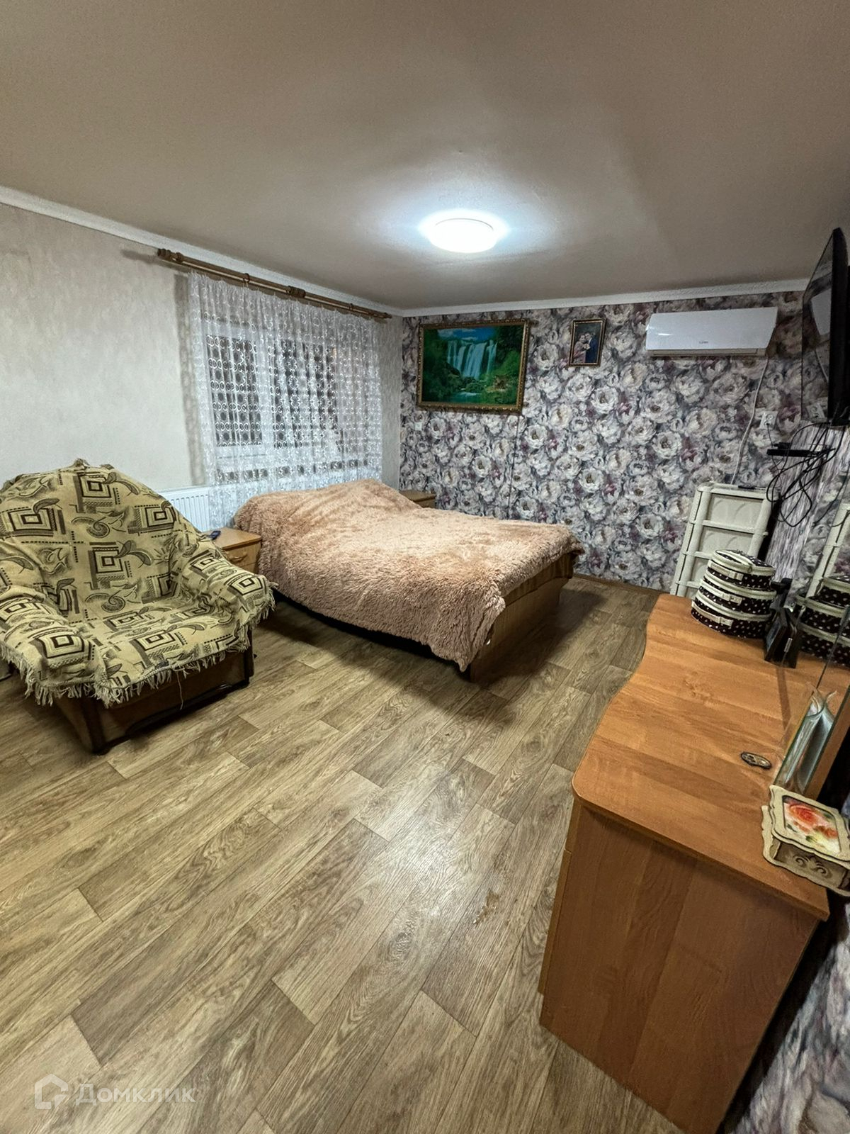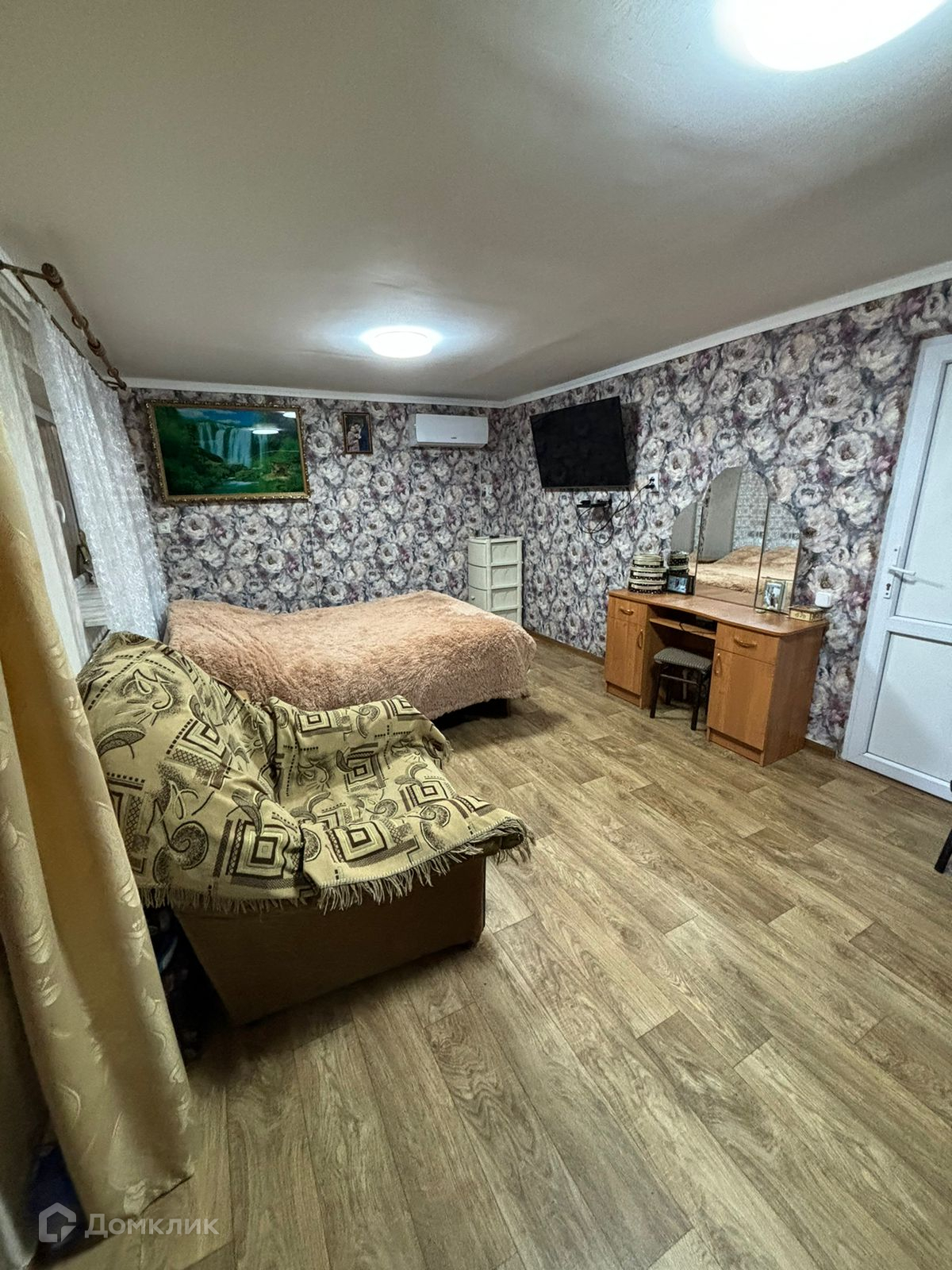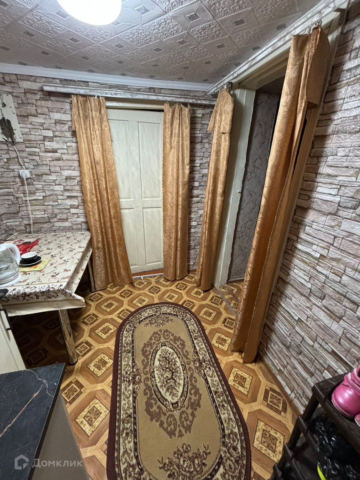 Дом построен из кирпича, его площадь 45 кв.м.( в нём 3 комнаты, кухня не большая, ванная),и жилая кирпичная пристройка 25 кв.м.(в ней 1 комната и совмещённый сан узел), кухня отдельная,18 кв.м. Подходит для двух семей, т.к. 2 отдельных входа.