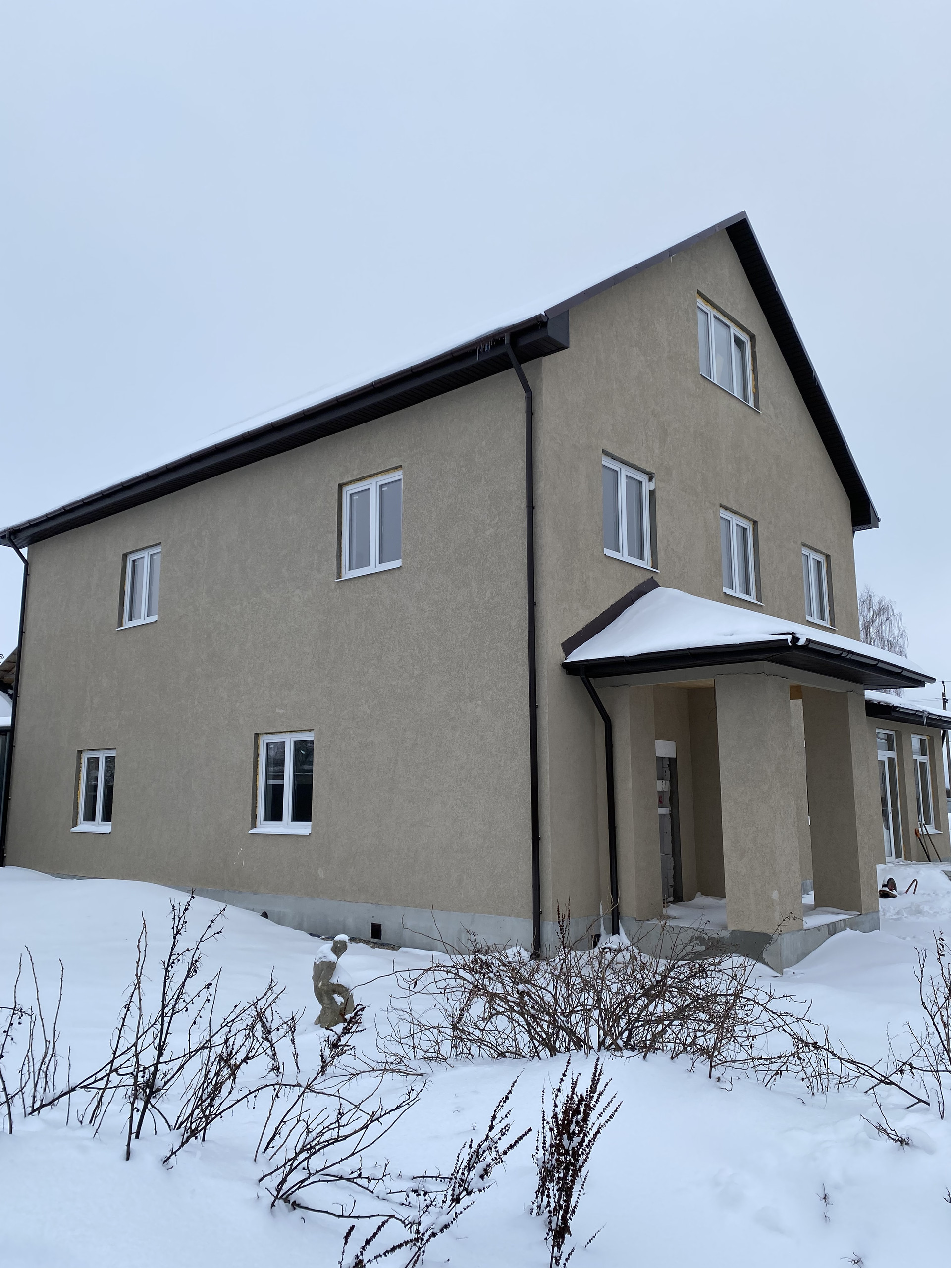 Новый дом, никто не жил. Магистральный газ, септик Топас 9 Пр, центральный водопровод+ колодец., отапливаемый подвал. Радиаторы Kermi, газовый котёл baxi. Дом построен из газоблоков, потом утеплитель 10 см ( очень тёплый), далее нанесена фасадная штукатурка (Короед), автоматические  въездные ворота.