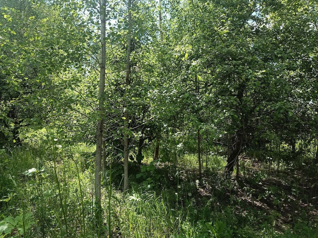 В живописном месте села Горки Клинского района продается земельный участок земель ИЖС (номер 1). Участок граничит с лесополосой, состоящей из березового леса. На участке много яблочных деревьев (сорта яблонь), тополей, берез, елей. Площадь участка под номером 1- 12,13 соток по документам, по факту присоединяется 2 сотки березовой лесополосы. То есть Вы сможете владеть и пользоваться 14 сотками по факту. На участке номер уже есть забор с 2 сторон (сетка и деревянный). Размер участка 1 - 22 метра на 55 метров. Участок огорожен забором с 2 сторон.