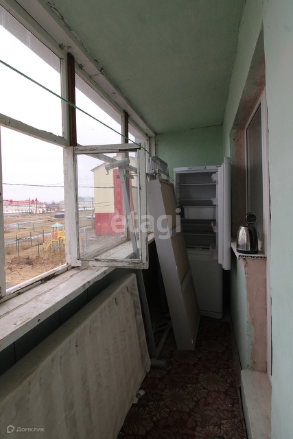 Лоджия: проходит в длинну по всей квартире, 2 выхода с кухни и с зала. большая, без ремонта с деревянным остеклением.