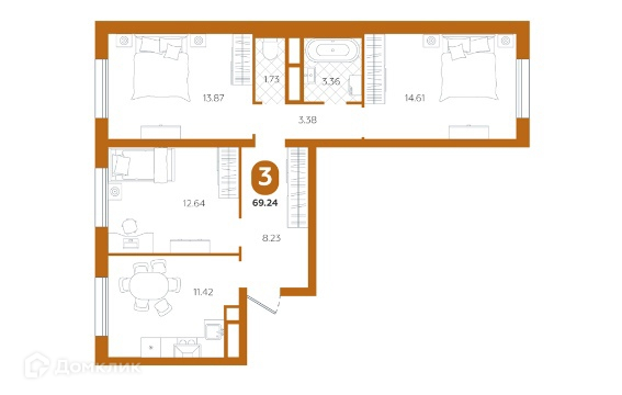 Общая площадь 69.24 м2