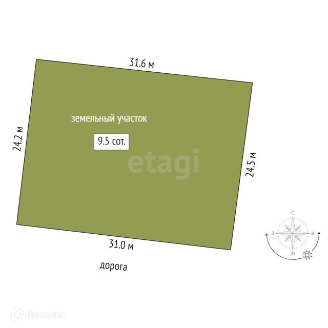 Площадь участка 9.5 сот.