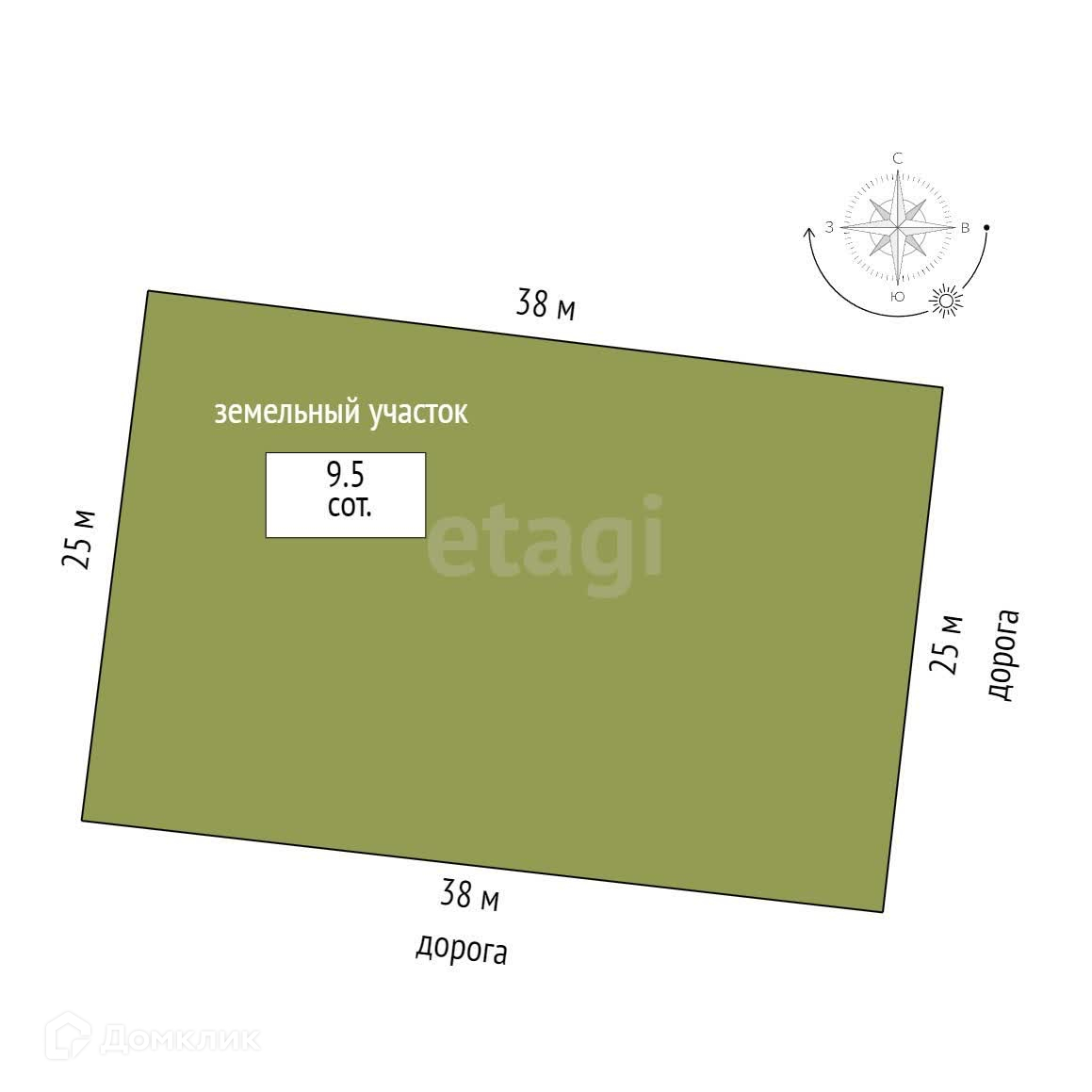 Площадь участка 9.5 сот.