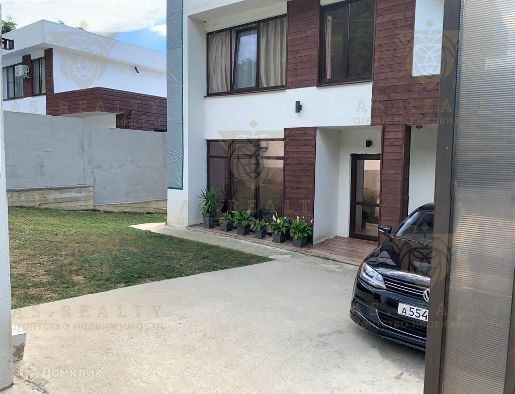 Вид на море и горы, соседние коттеджи в таком же стиле, до коттеджа асфальтированная дорога.