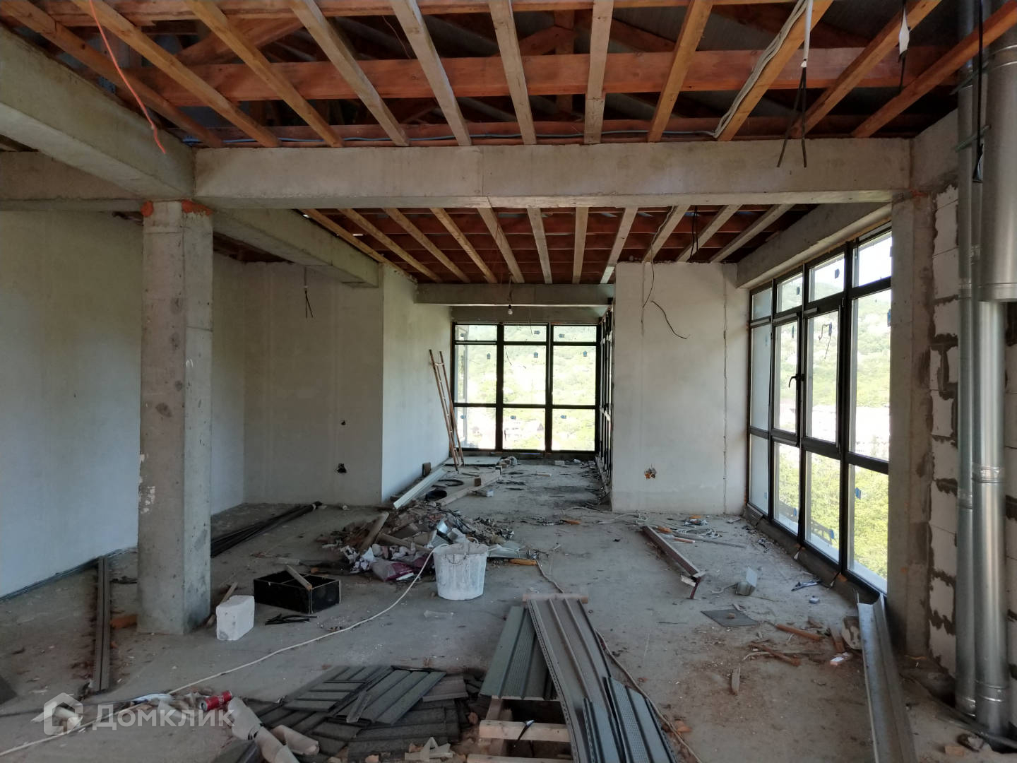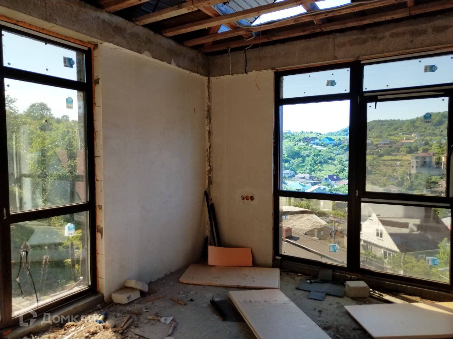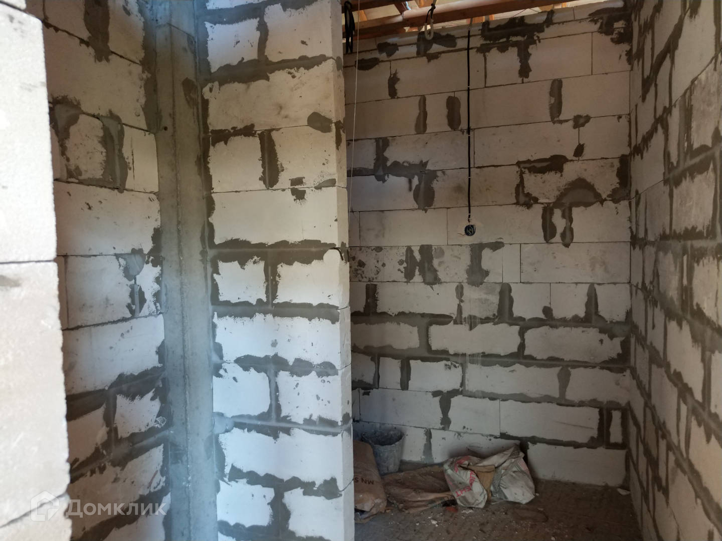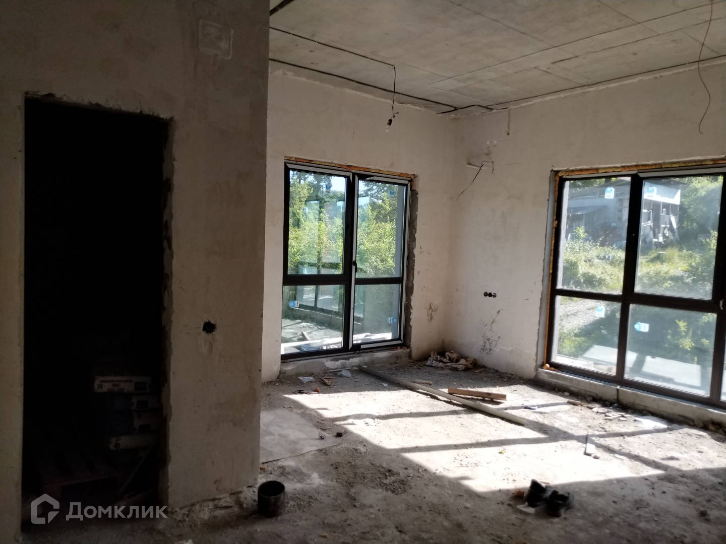 В доме новый фасад, сделаны перегородки согласно плана, произведены монтажные работы электрики, сантехники, систем кондиционирования. Есть цокольный этаж с бассейном и комнатами для коммуникаций. Газ и вода по границе, подклчено только элетричество. Вопрос с водоотведением не решен.
