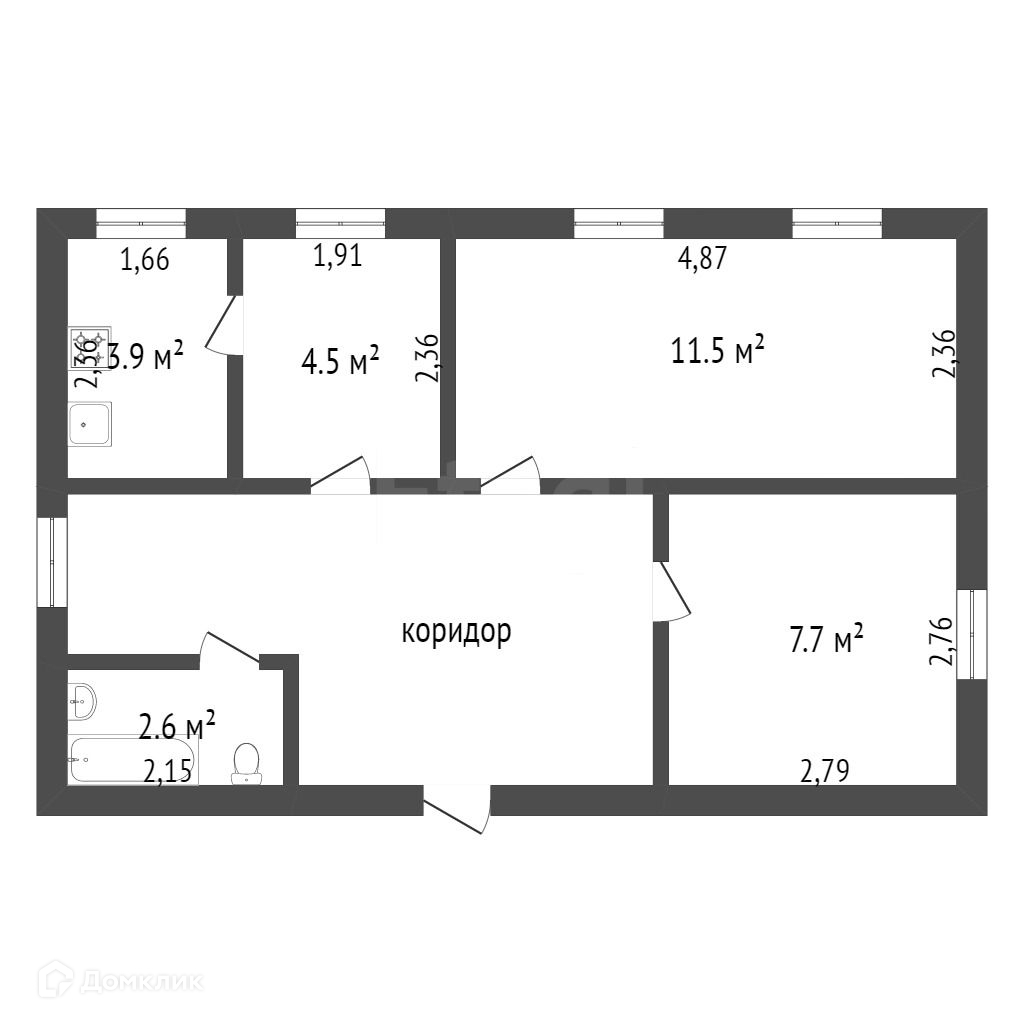 Общая площадь 67.7 м2