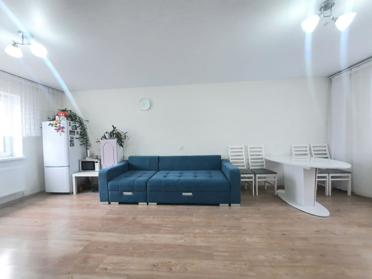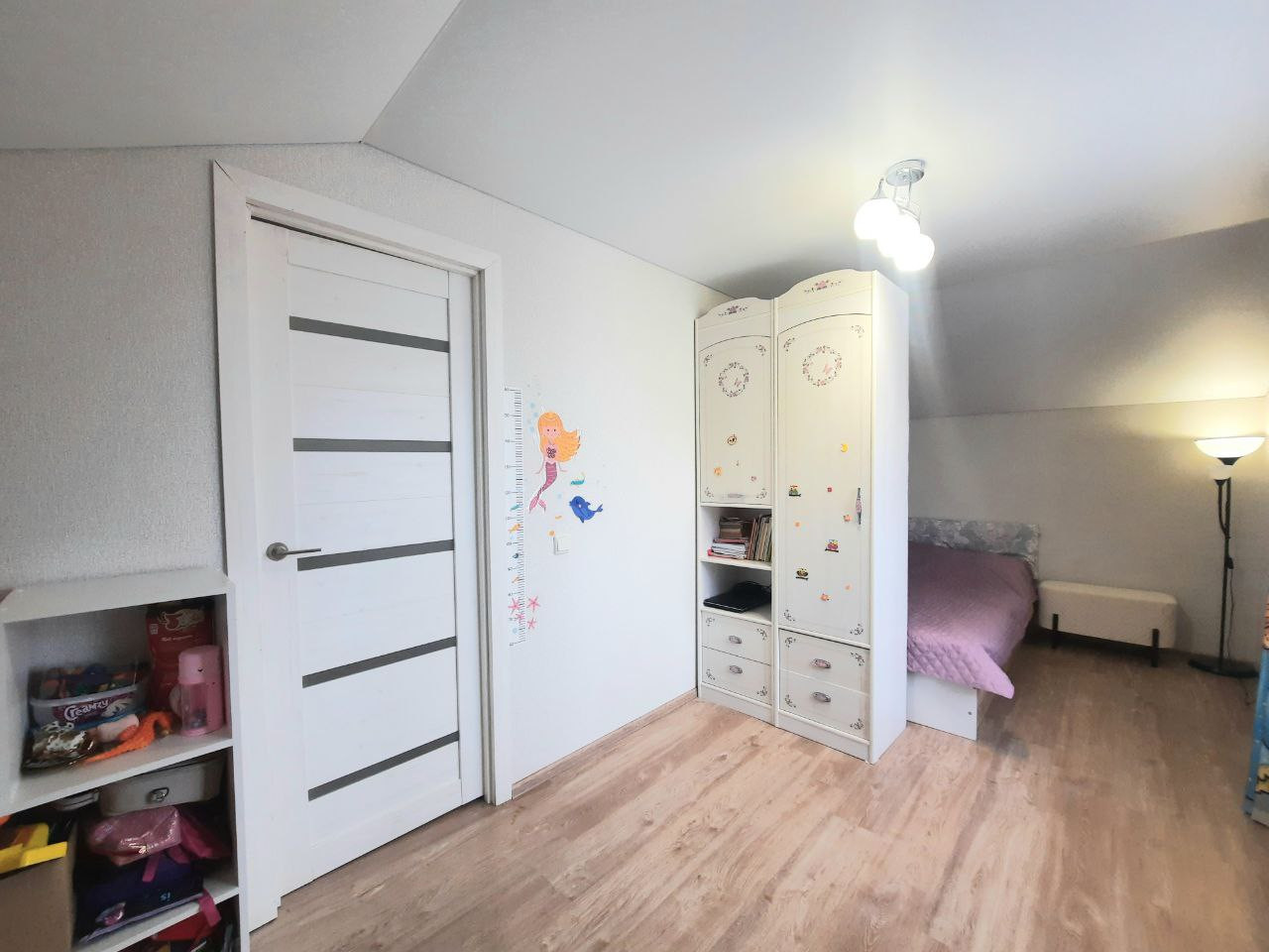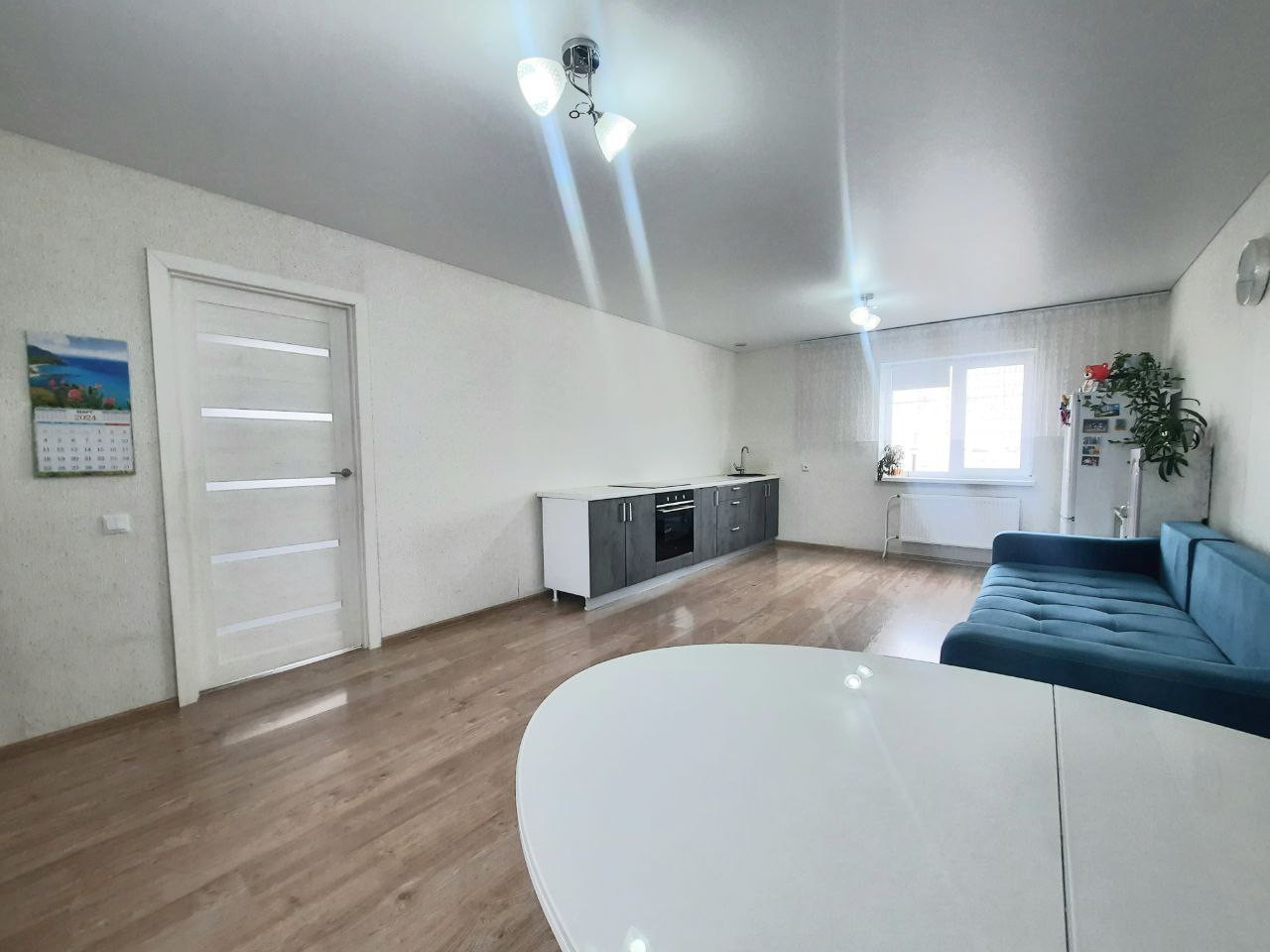 В доме: натяжные потолки, полы ламинат, межкомнатные двери, в ванной комнате кафель, плитка. Теплые полы по всему первому этажу. Остается кухонный гарнитур с варочной панелью, кухонный стол со стульями, угловой шкаф в спальне, встроенный шкаф в прихожей.