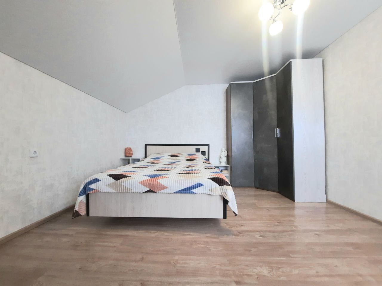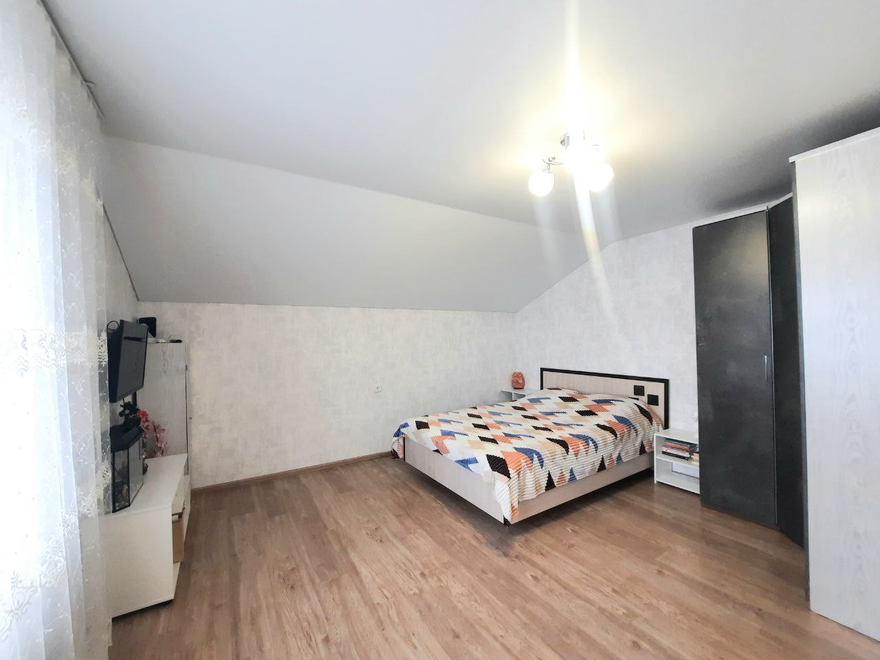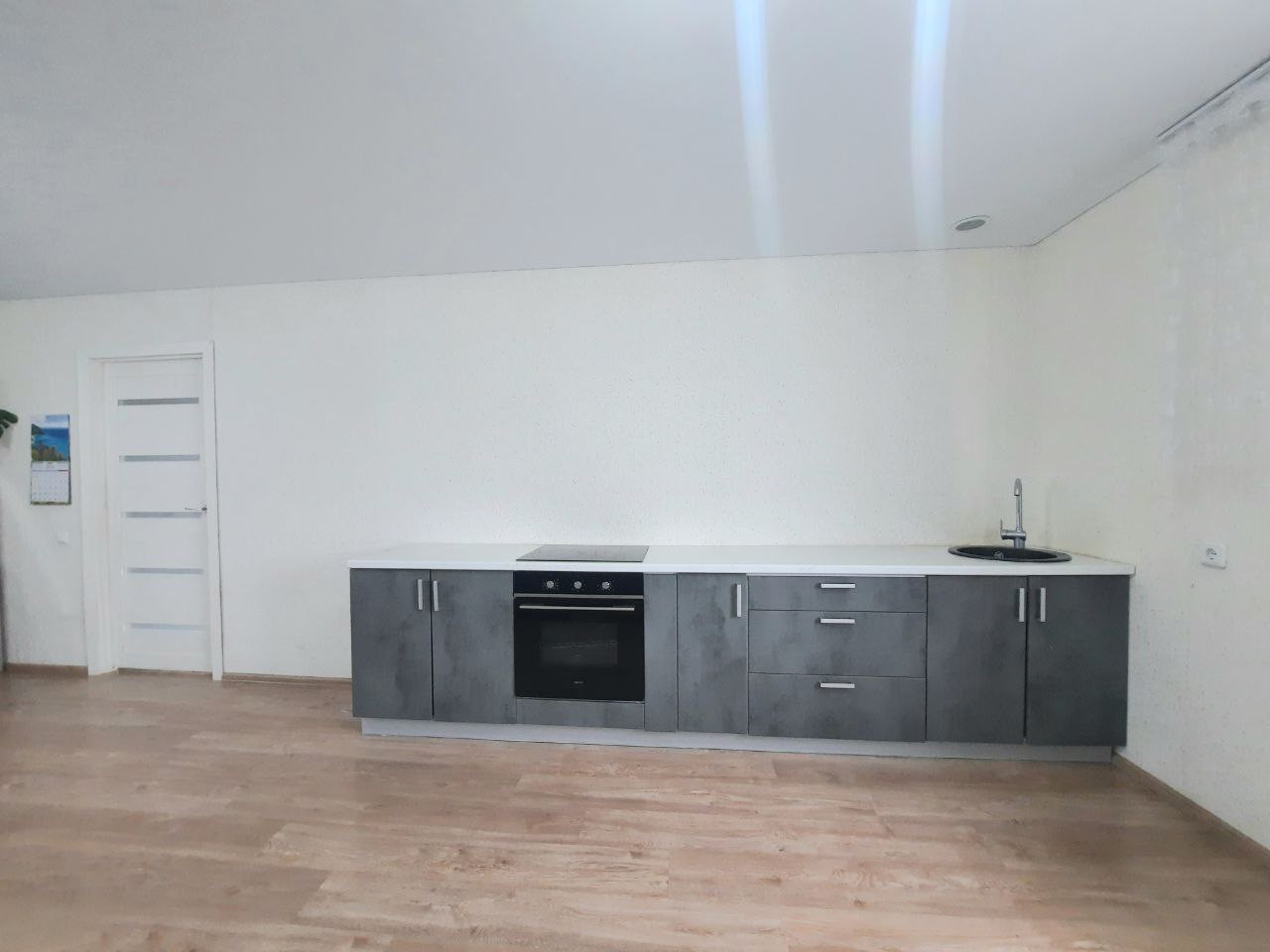 В доме: натяжные потолки, полы ламинат, межкомнатные двери, в ванной комнате кафель, плитка. Теплые полы по всему первому этажу. Остается кухонный гарнитур с варочной панелью, кухонный стол со стульями, угловой шкаф в спальне, встроенный шкаф в прихожей.