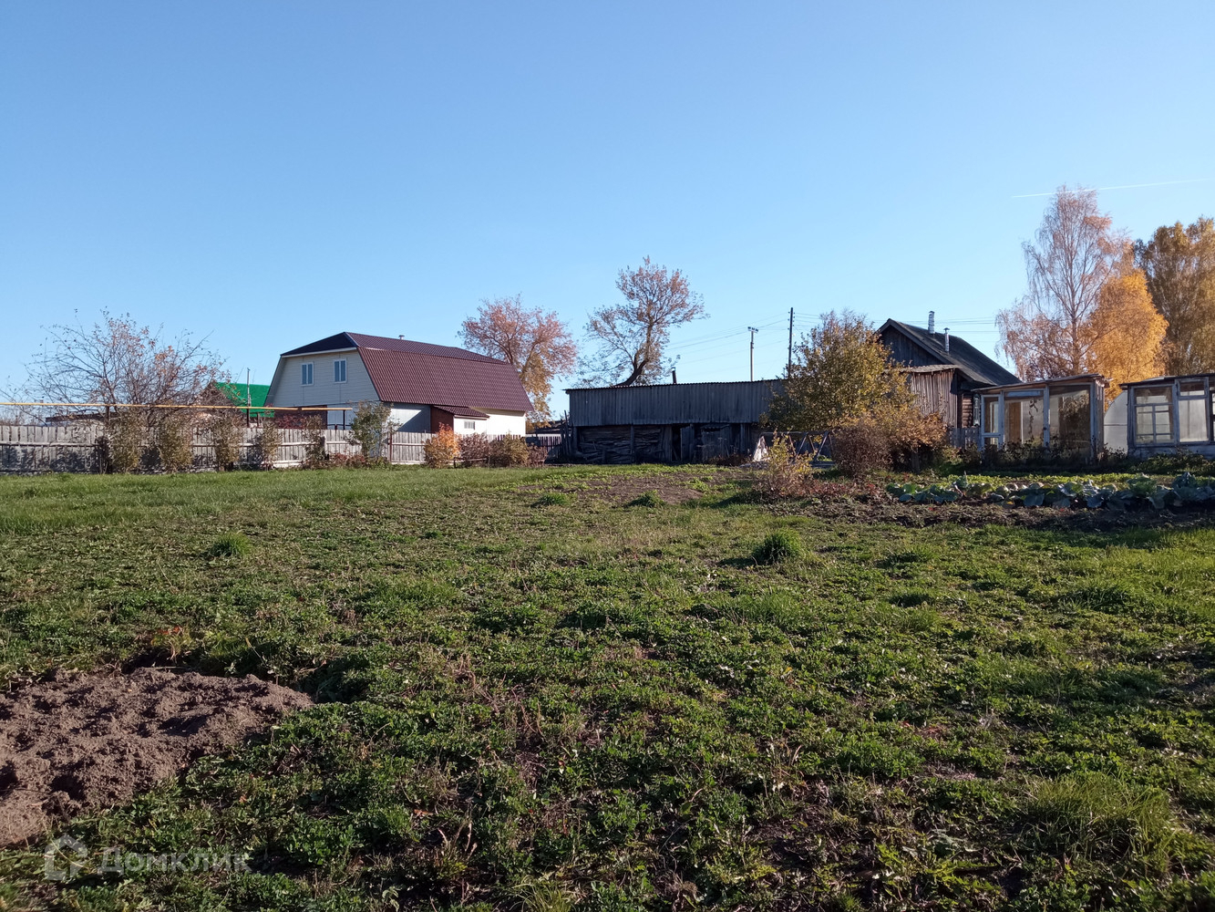 - Большой участок, теплицы, грядки, покос.