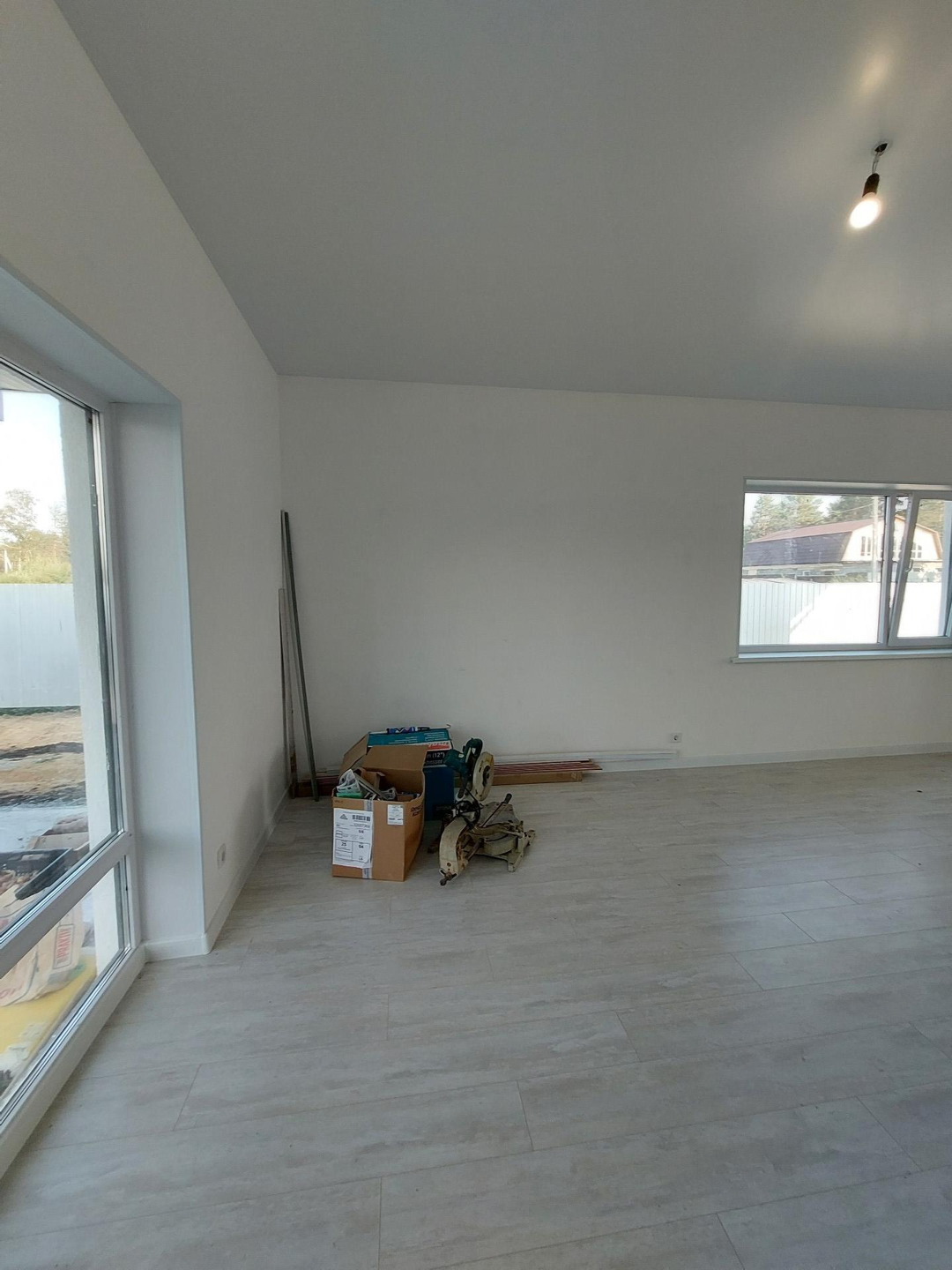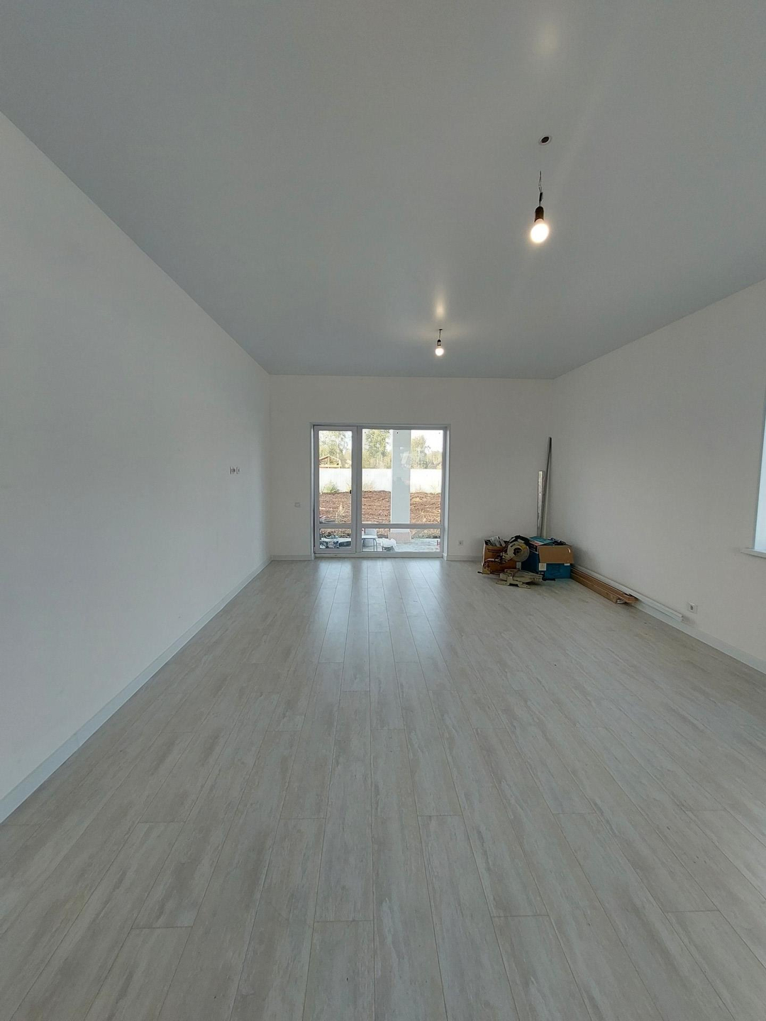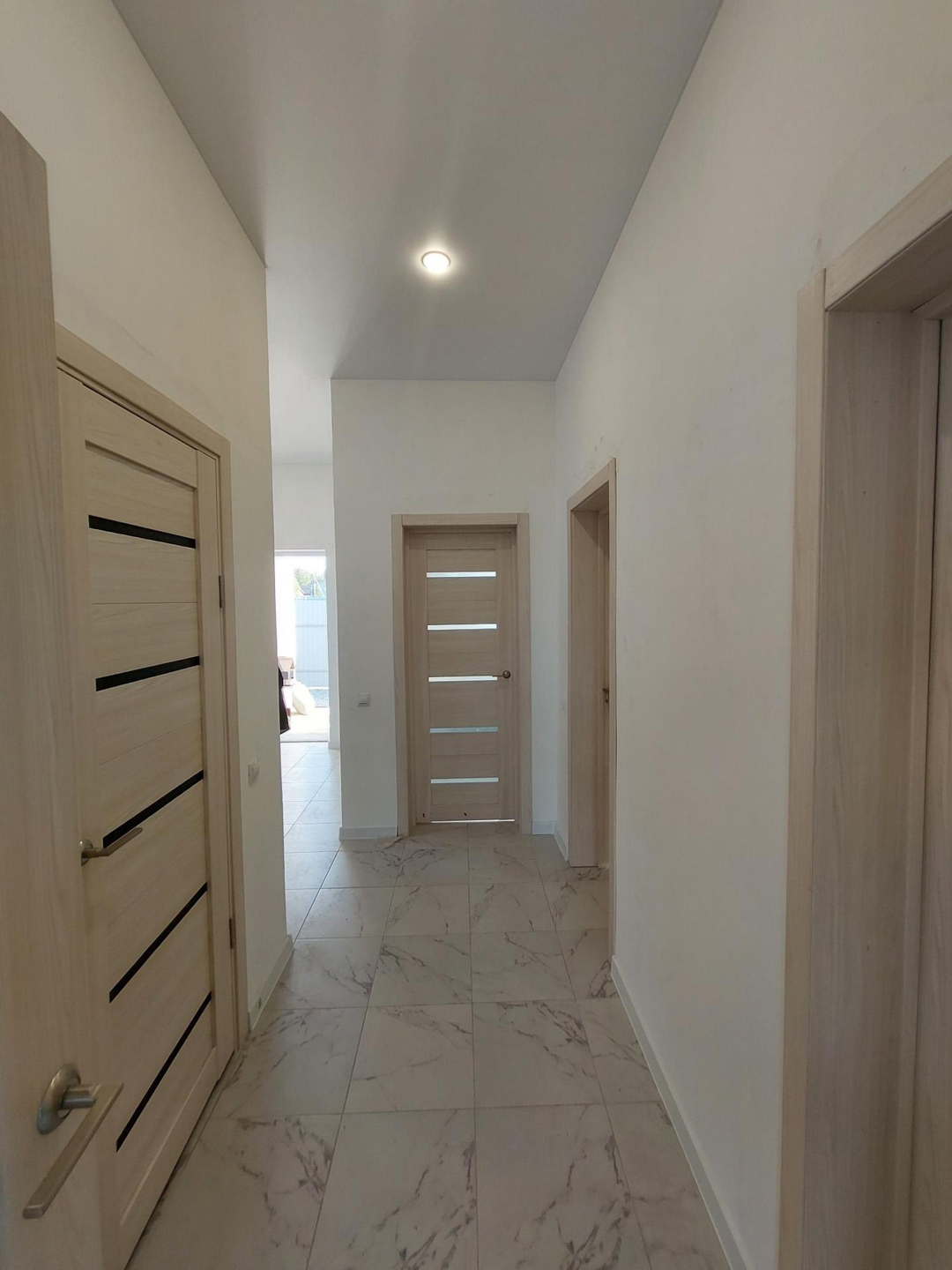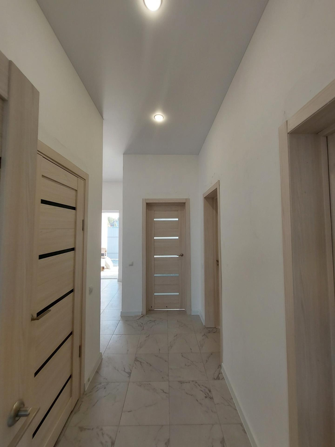 Отделка дома "Под ключ " включает в себя: керамогранит, лaминат,обои, санфаянс в ванной комнате и санузле,натяжные потолки с точечные светильниками,межкомнатные двери.