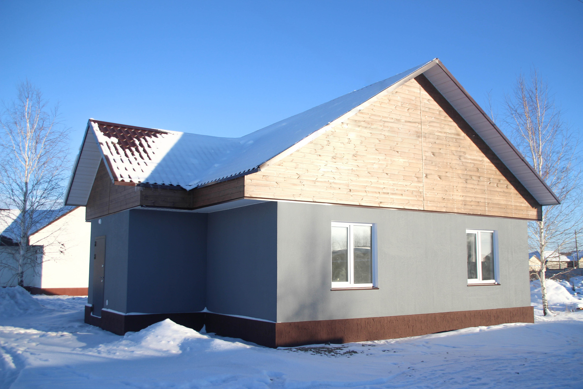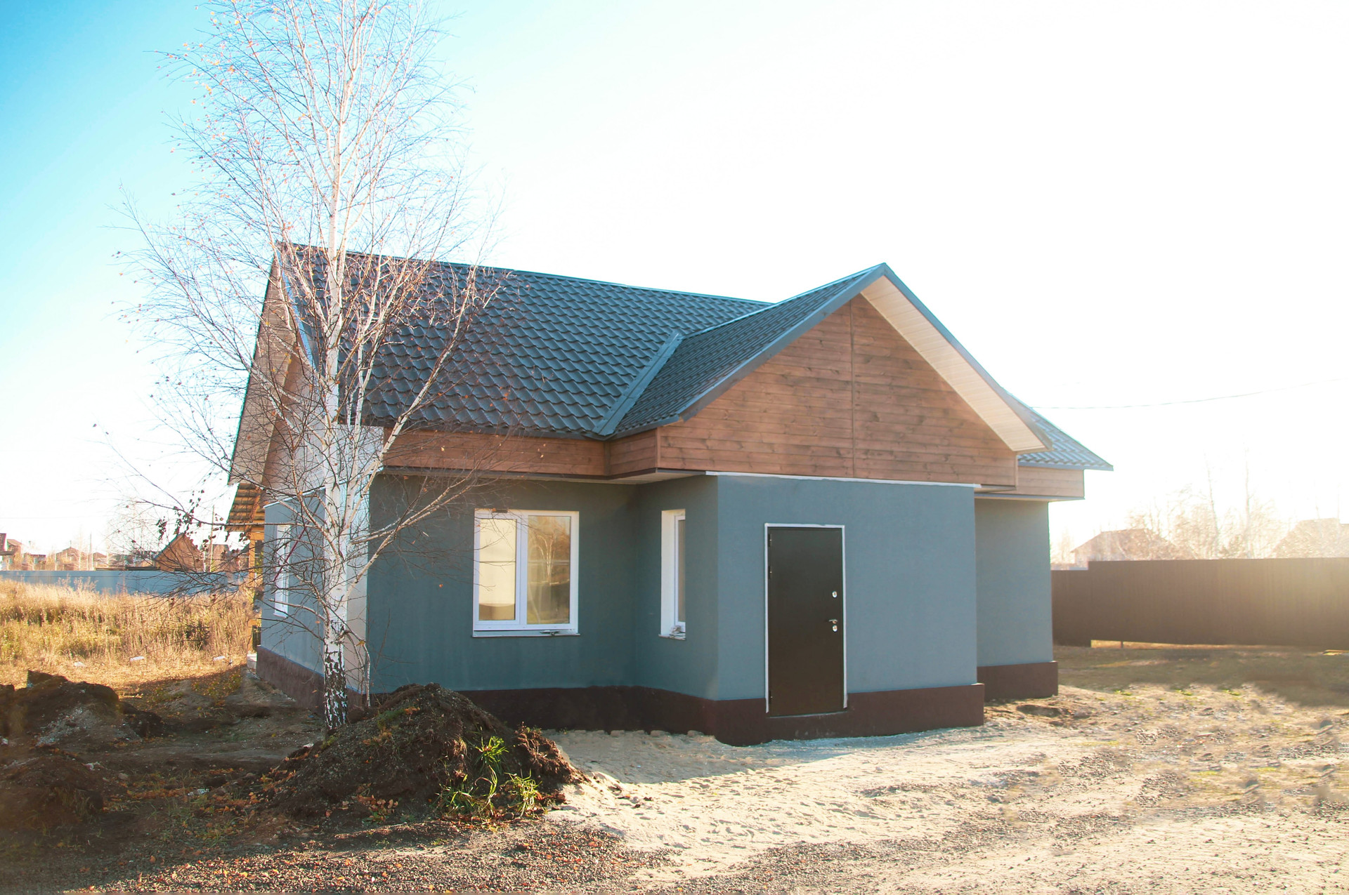 Подготовленные для напольного покрытия полы, выровненные стены под обои, натяжные потолки. Заведены коммуникации: скважина, выгребная яма, отопление - теплый водяной пол с возможностью регулирования температуры – дом получается очень теплый.