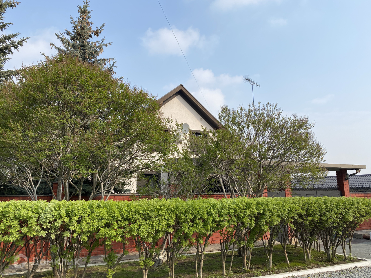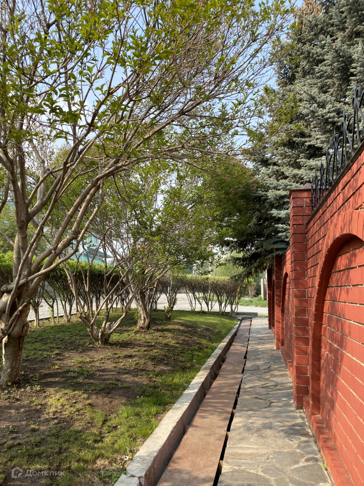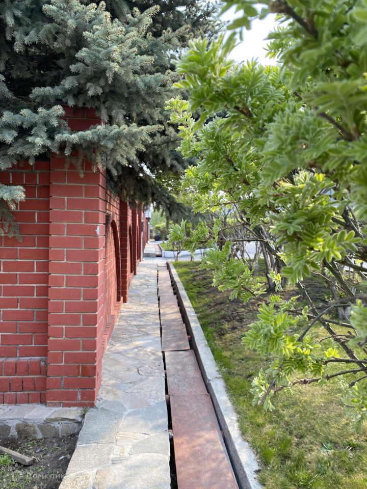 Периметр всего участка огорожен капитальным кирпичным забором. Дом и участок находится