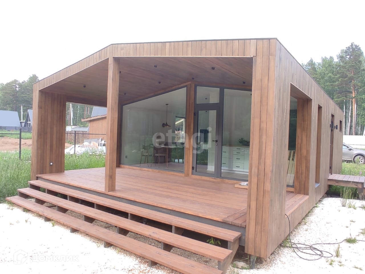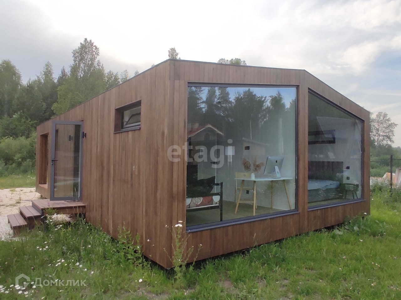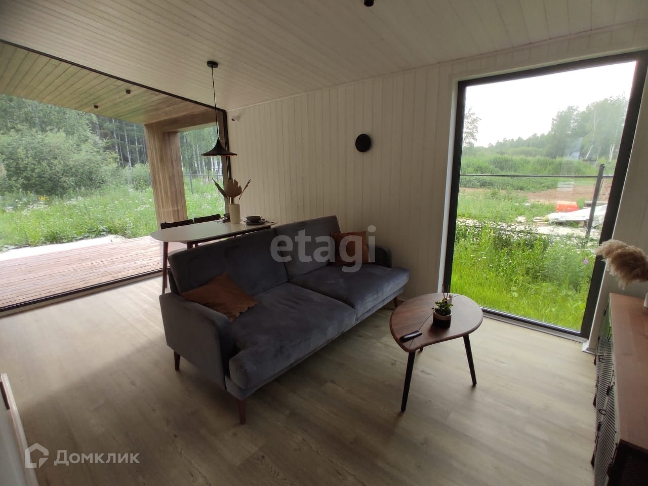 Самый универсальный и востребованный дом площадью 50 кв.м., и террасой 19,6 кв.м. Панорамные окна, до деталей проработанная обстановка внутри — все это подарит вам незабываемый опыт загородной жизни.