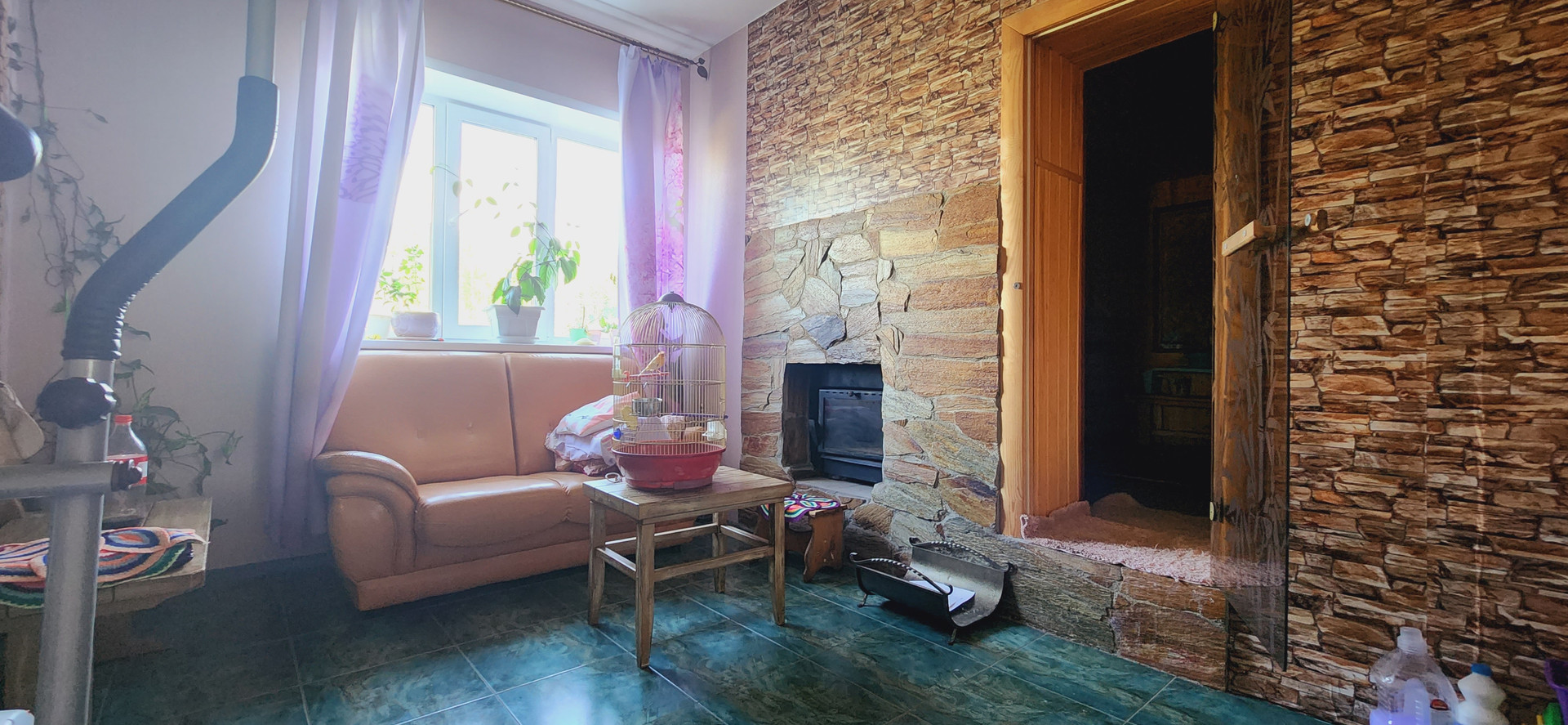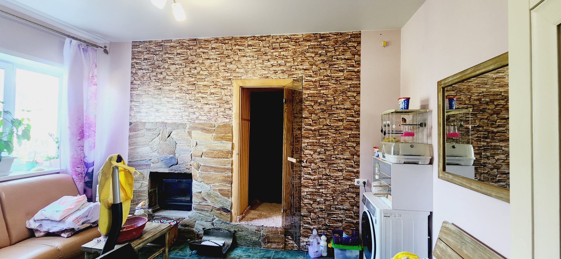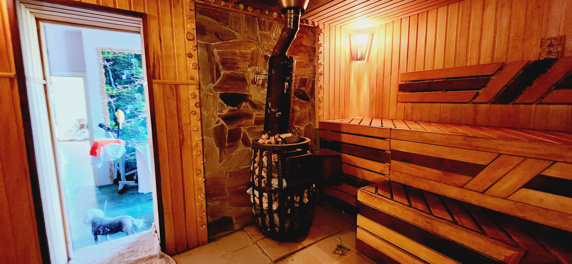 -каминный зал из которого вход в баню, прекрасное место для расслабления.