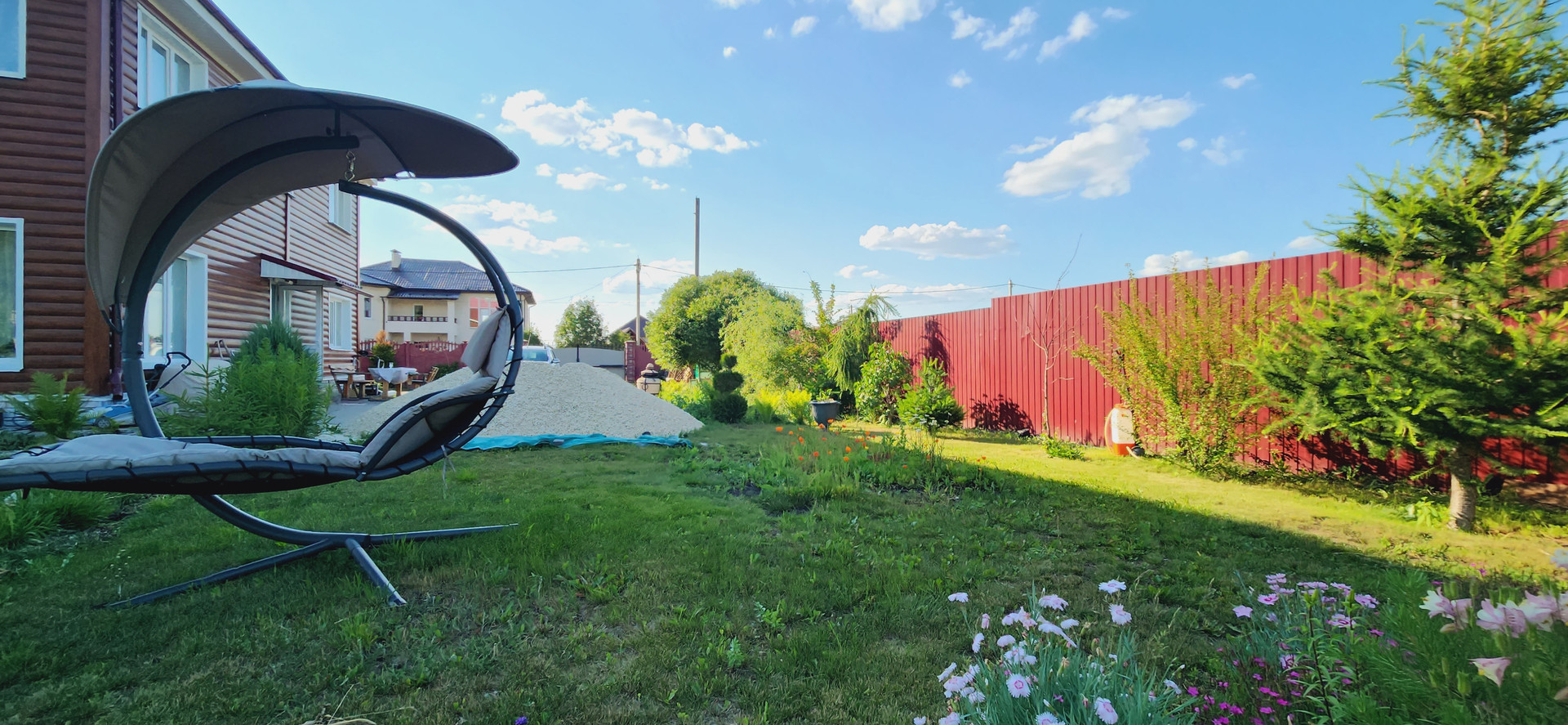 На участке прекрасный ландшафтный дизайн: много цветов, деревьев, кустарников! Много места для отдыха и игр детей! Идеальный вариант для большой и дружной семьи.