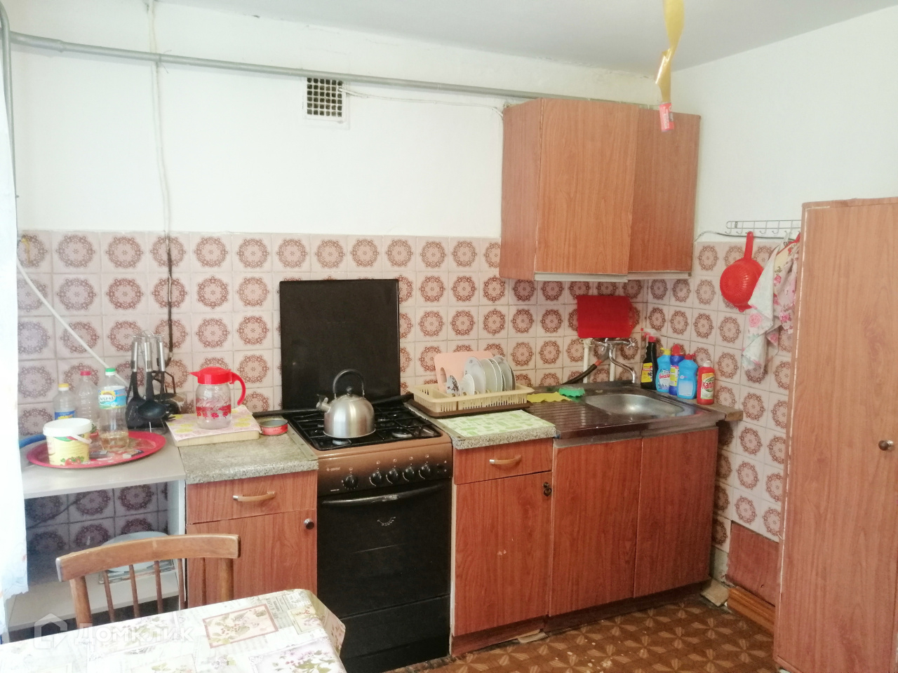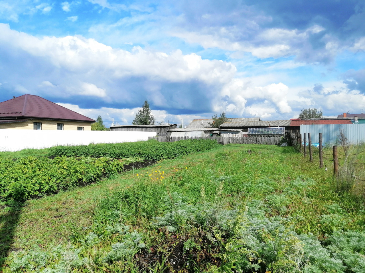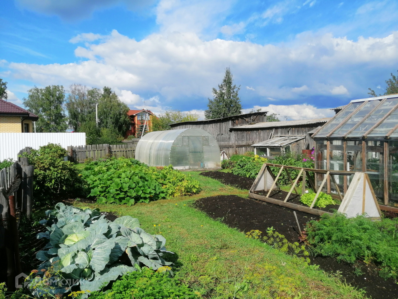 Жилая площадь дома составляет 63 кв.м. и состоит из четырех жилых комнат (20, 16, 16 и 12 кв.м.) и 10-метровой кухни, раздельный санузел. Дополнительно к дому есть холодный пристрой с 13-метровой верандой. Отапливается дом от газового котла, зимой очень тепло. Центральное водоснабжение, дополнительно имеется скважина, канализация. Под домом имеется подпол, под крышей – мансарда. На окнах по всему дому стоят пластиковые стеклопакеты, на полу линолеум. Во дворе имеется множество капитальных построек: баня, летний домик, несколько сараев, два гаража, яма для хранения овощей, теплицы и другие хозяйственные постройки.