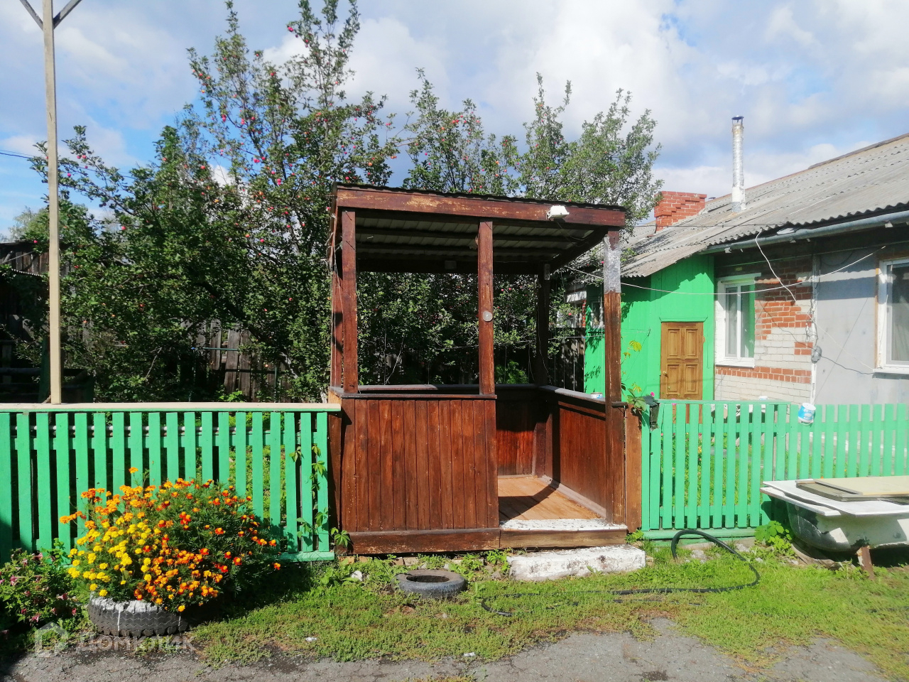 Земельный участок площадью 18 соток разработан, есть многолетние деревья и кустарники. Участок правильной прямоугольной формы. На соседней улице расположен супермаркет Пятерочка. До садика 10 минут, до школы – 15 минут пешком. Недалеко от дома выезд на Полевской тракт.