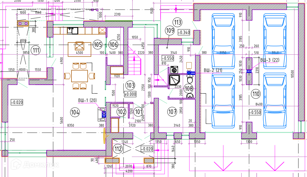 - на 1этаже просторная кухня-гостиная 65 кв.м с выходом на террасу, кладовая, санузел, котельная и выход в гараж;