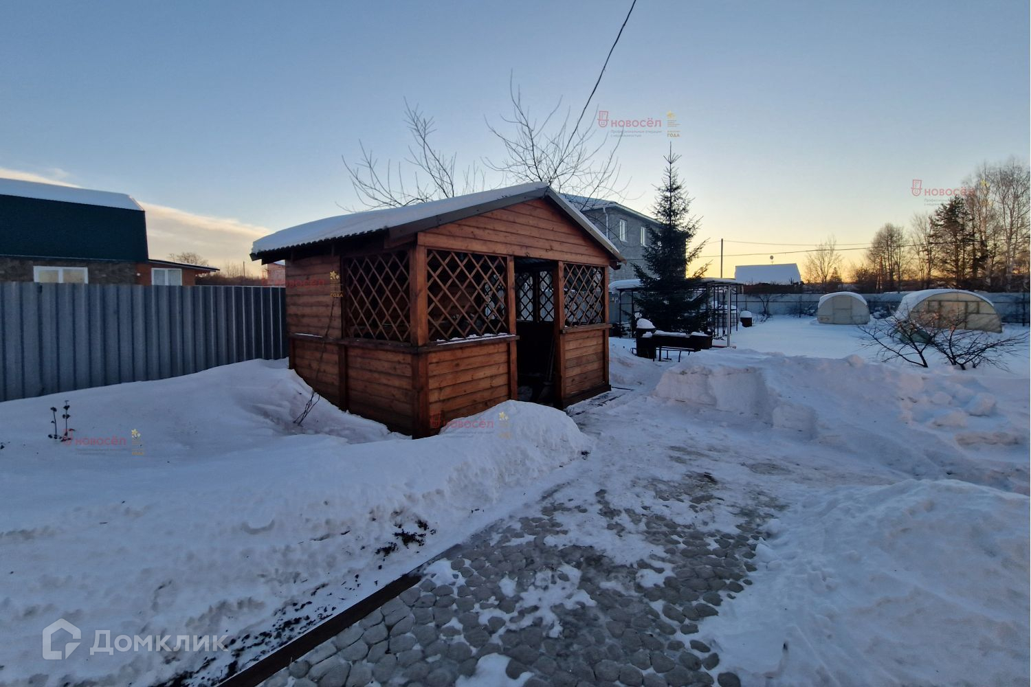На участке баня 2022 года (5*2,3 кв.м), печь Дачник Финка. Беседка, мангальная зона, каркас под хоз.постройку, две теплицы, площадка под бассейн. Земельный участок разработан, много плодово-ягодных культур, цветников. Дорожки выложены плитняком.