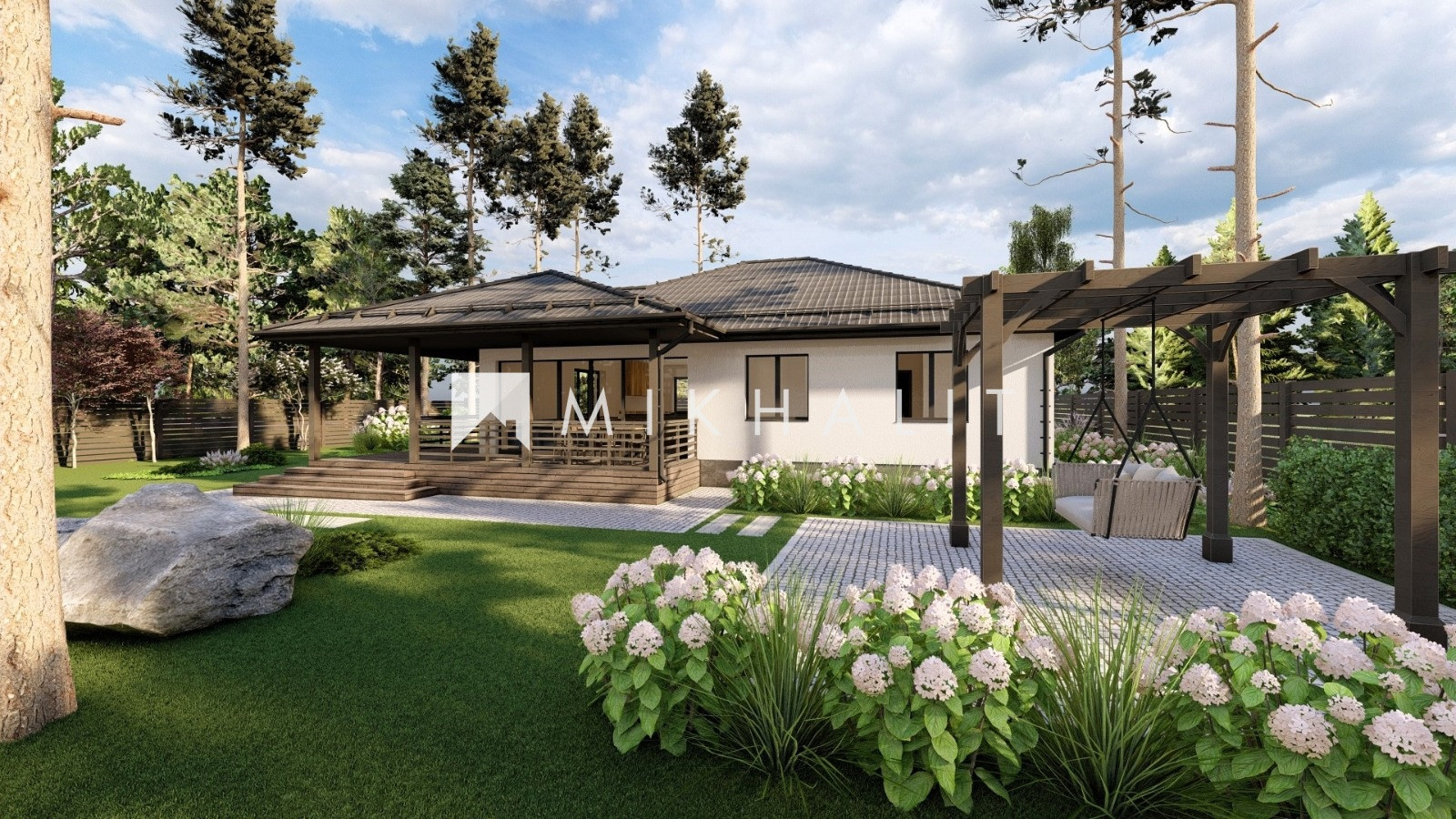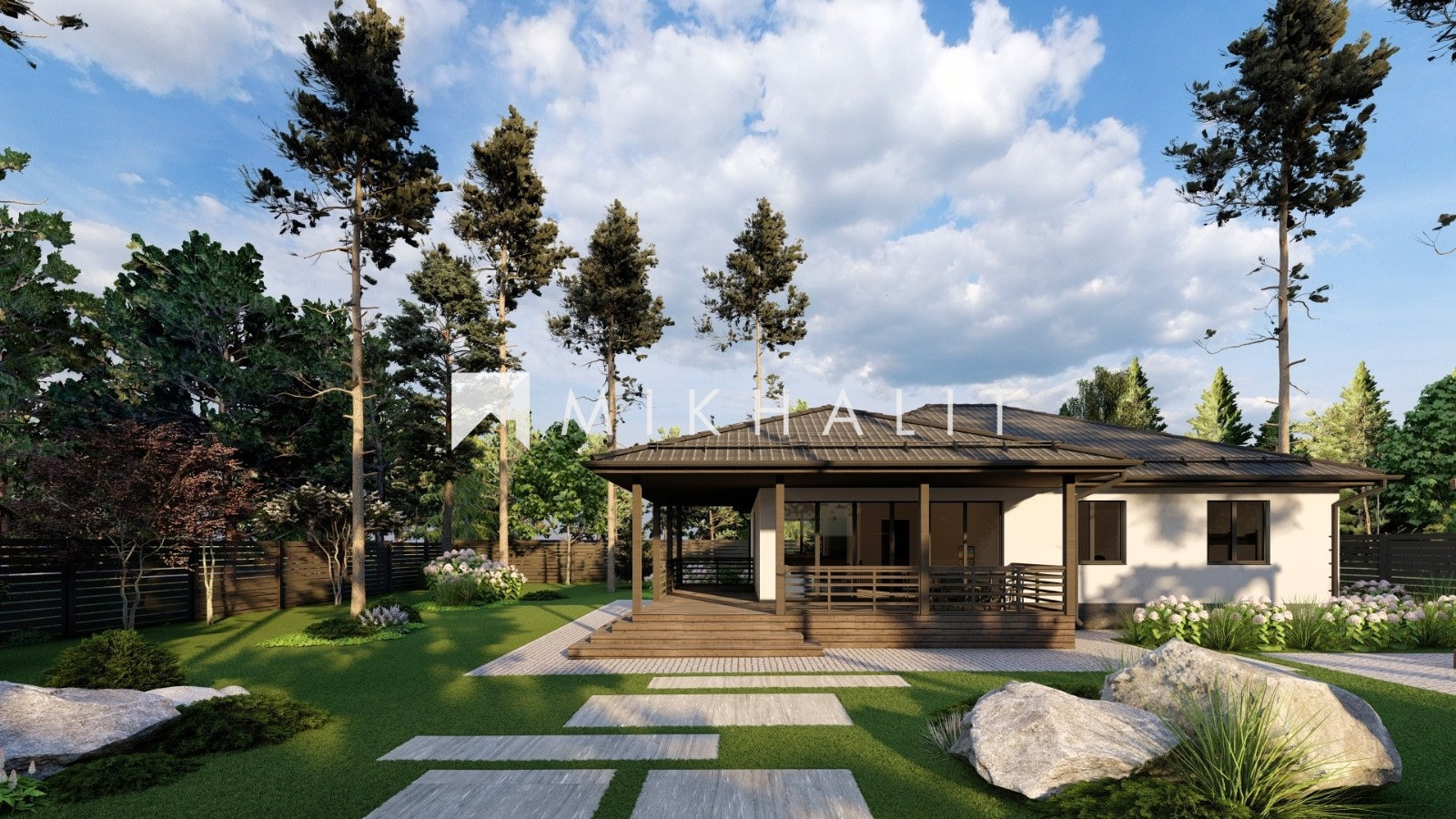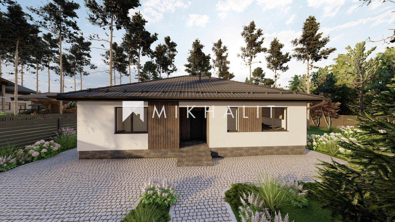 Проект выполнен в классическом стиле и 4х скатной кровлей.