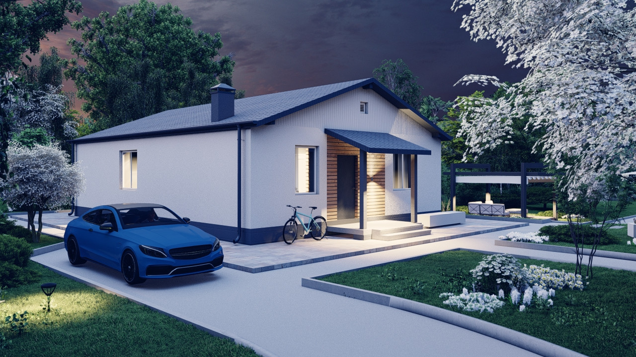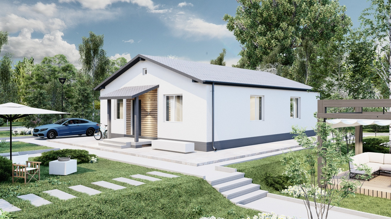 Этот уютный одноэтажный загородный дом — это идеальное место для отдыха и релаксации в окружении природы. Входя в дом, вы оказываетесь в просторном зале с высокими потолками и обилием естественного света, создающим атмосферу простора и уюта. Здесь вы можете устроить приятные вечера в кругу семьи или проводить время в компании друзей.