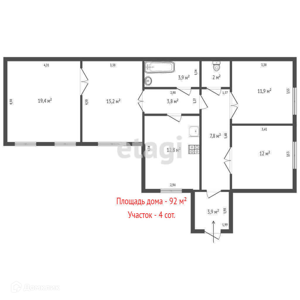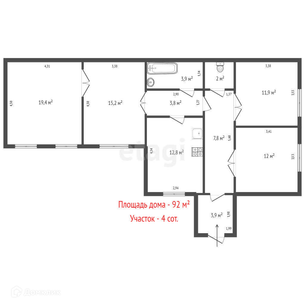 Общая площадь 92 м2