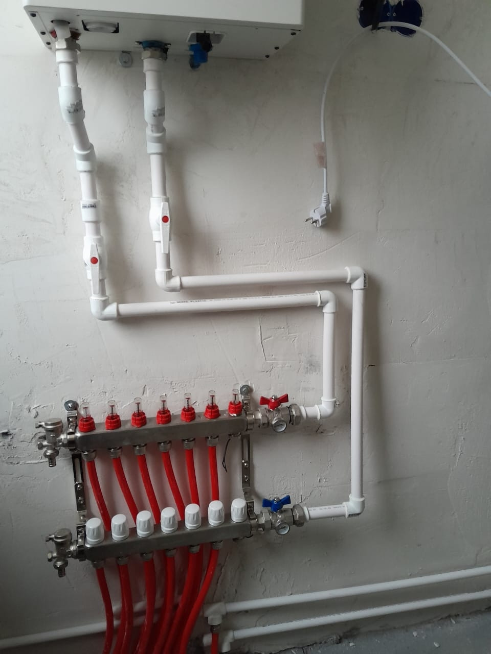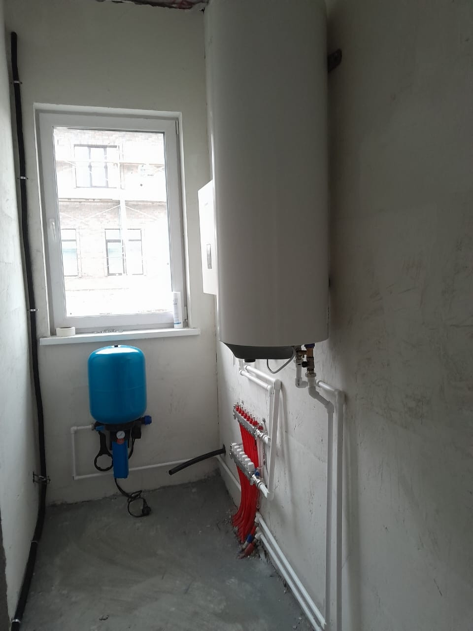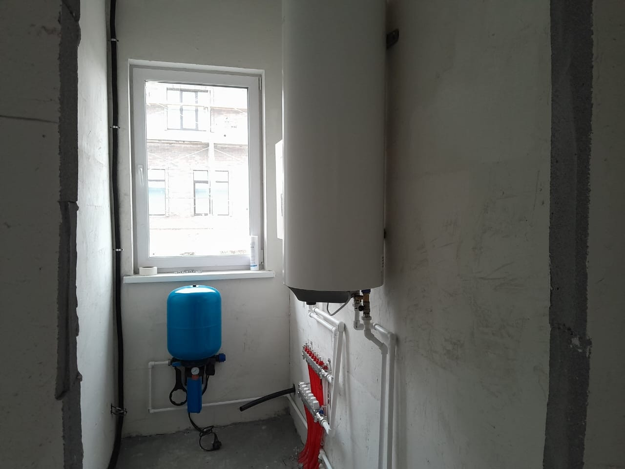 Предчистовая отделка, штукатурка, стяжка, на этой стадии можно добавить розетки и развести сантехнику как вам будет удобно.