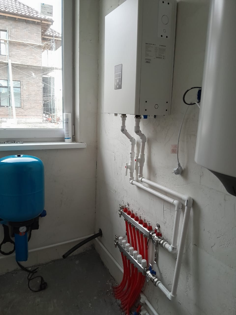 Септик переливной, 4 кольца. Электричество 15 кВт, 380 В. Скважина 36 метров. Отопление — 6 контуров теплого пола, труба VALTEС, теплый пол сделан как надо, в стяжке, а не в фундаменте. Проводка, розетки — 2,5 сечение, свет — 1,5, разведена по дому, установлен котел японский, котел KENTATSU на 13 кВт, водонагреватель Haier 100 литров, скважина обвязана.